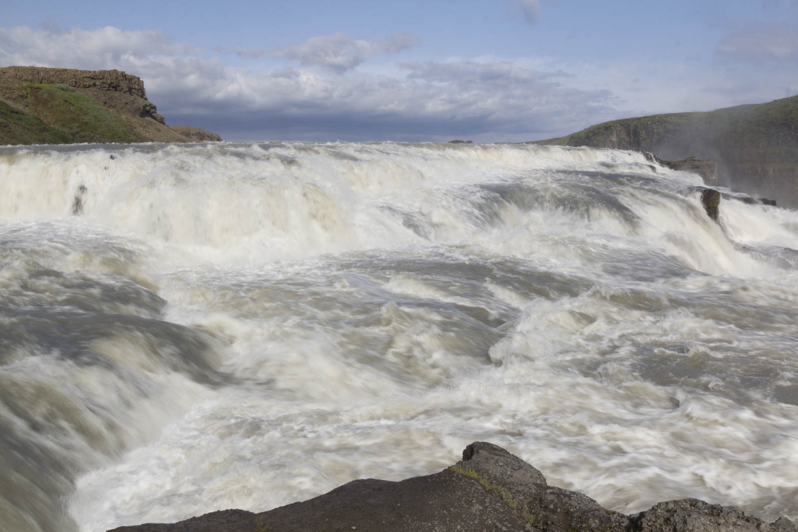 Et là, c’est encore une autre histoire. Autant Fludir était un village, autant Gulfoss est juste un site touristique au milieu du néant. Donc trouver une voiture pour nous prendre en stop entre ces deux points est un joli défi. Plusieurs véhicules se lancent quand même sur cette route, mais ce n’est qu’au bout d’une bonne heure qu’un couple de jeune Islandais finira par nous y amener. Record d’attente battu !