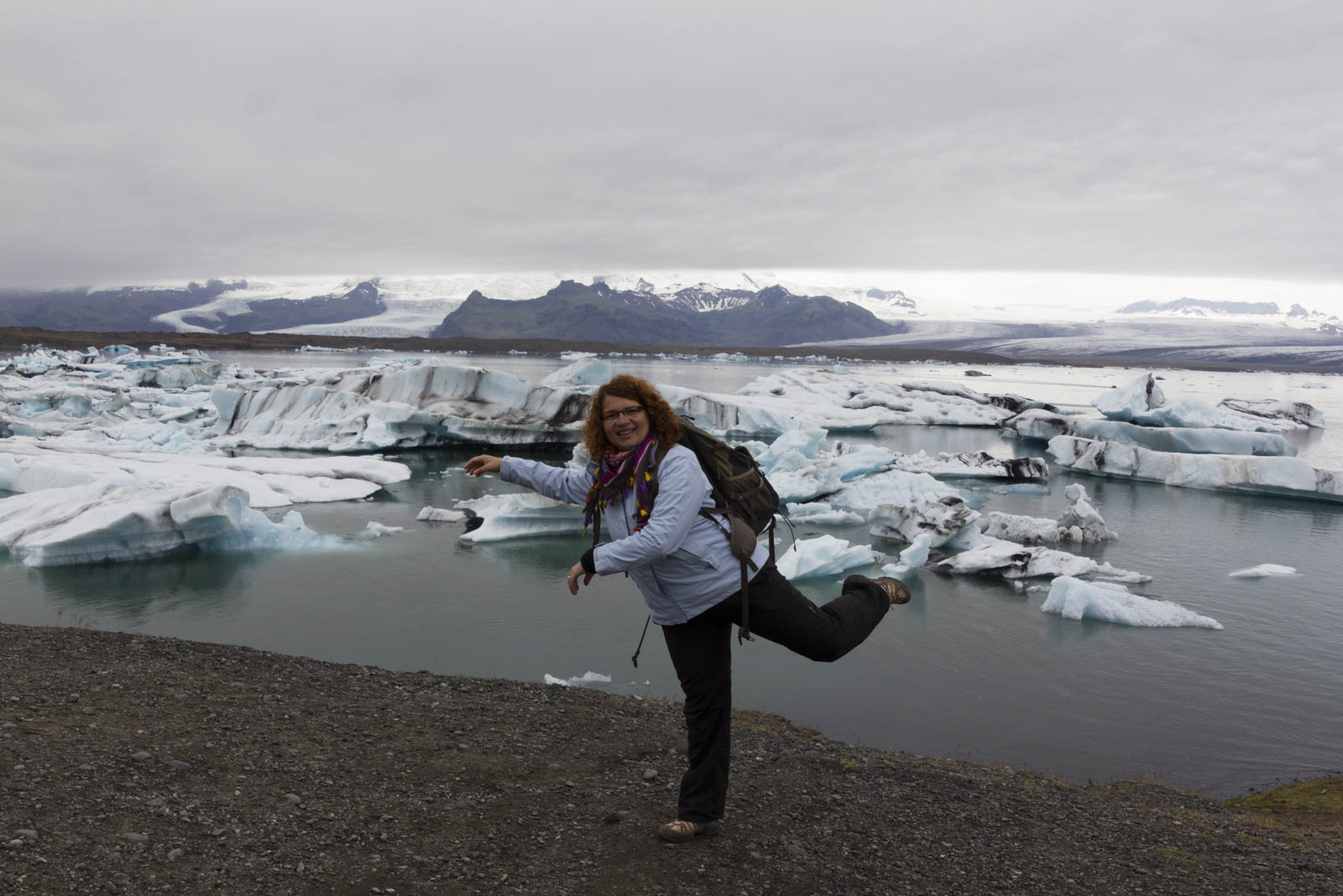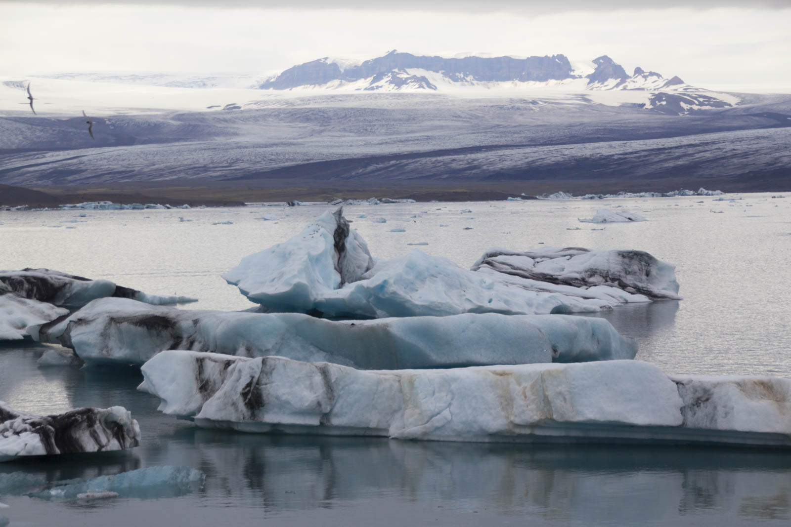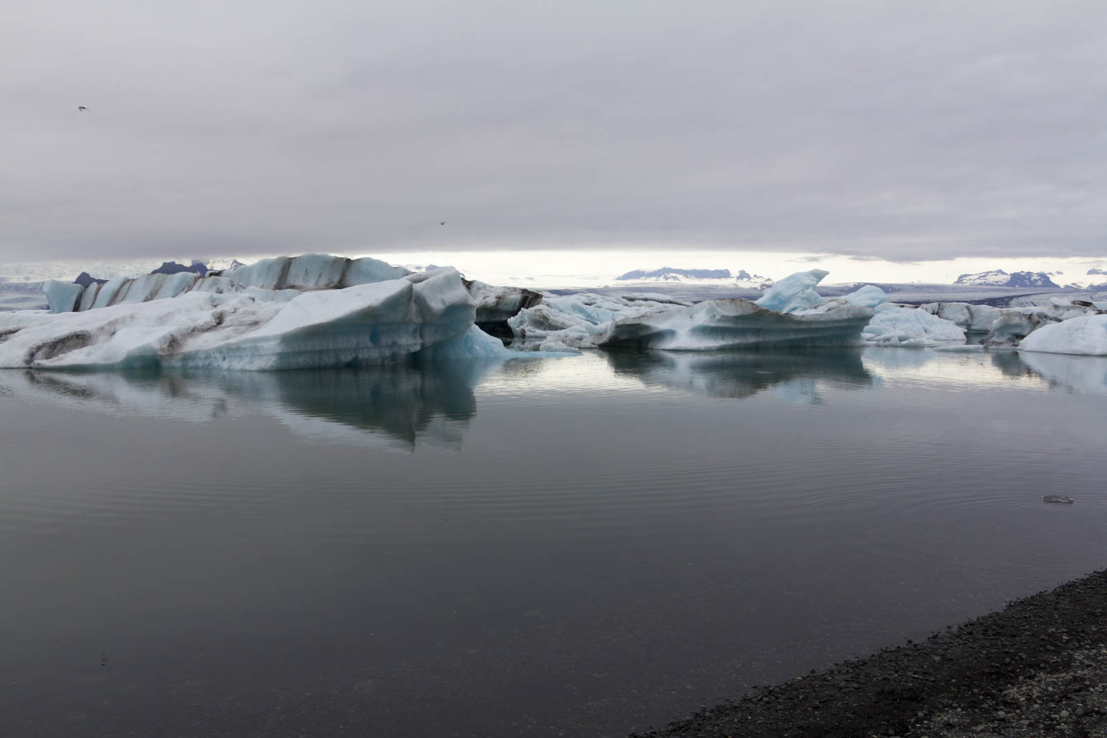 Point de rencontre entre un glacier et la mer, ce site unique est majestueux. En décor de fond le Vatnajökull, le plus grand glacier d’Europe. Pour s’en donner une idée, il représente la superficie de la Corse. Pas mal ! Mais nous n’en voyons qu’une langue géante qui vient finir sa chute directement dans une lagune creusée par l’océan. Des pans de glace se détachent parfois et se mettent à dériver très très lentement vers le grand large. On se trouve alors face à une lagune remplie d’icebergs allant du blanc au bleu clair puissant. Merveilleux. L’endroit préféré de Sandrine en Islande (enfin ça c’était avant, car le lendemain…. mais on vous en reparlera dans quelques jours). A revenir une deuxième fois sur le lieu, l’endroit n’a pas perdu une miette de sa magie et vaut bien les quelques heures de bus qu’il nous reste pour rentrer, d’autant plus que la route a elle aussi fière allure.