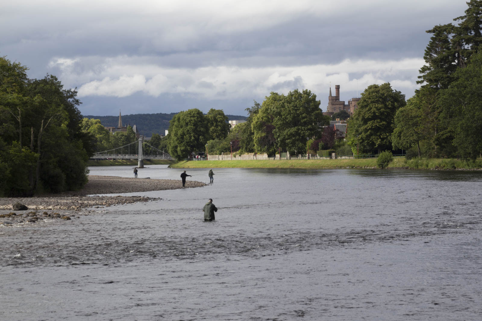 D’Inverness, nous retenons surtout la jolie balade le long de la rivière Ness. A peine quelques minutes de marche et on a l’impression d’être complètement sorti de la ville. Le cadre est bucolique, la rivière s’écoule paisiblement, des pêcheurs avec de l’eau jusqu’aux genoux taquinent le saumon au milieu des hérons.