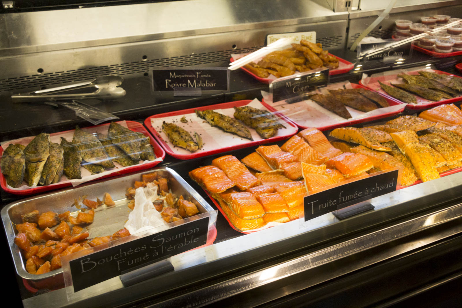 C’est le « marché touristique » de la ville de Québec, localisé dans les halles du Vieux-Port. Il n’est finalement pas très grand. Attention, les nombreux DAB disséminés aux coins du marché n’acceptent pas la Visa. Il faut bien prévoir son cash en arrivant.
