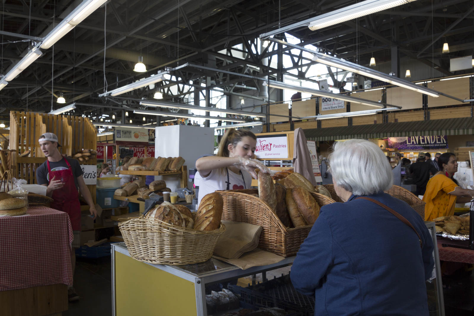Halifax est notamment réputée pour ses produits maritimes : poissons et fruits de mer. Plusieurs stands en proposent, parfois déjà cuisinés. On peut notamment déguster des wraps ou des sandwichs club au homard. A part ça, le reste est assez classique : des fruits, légumes, viandes, pâtisseries, etc.