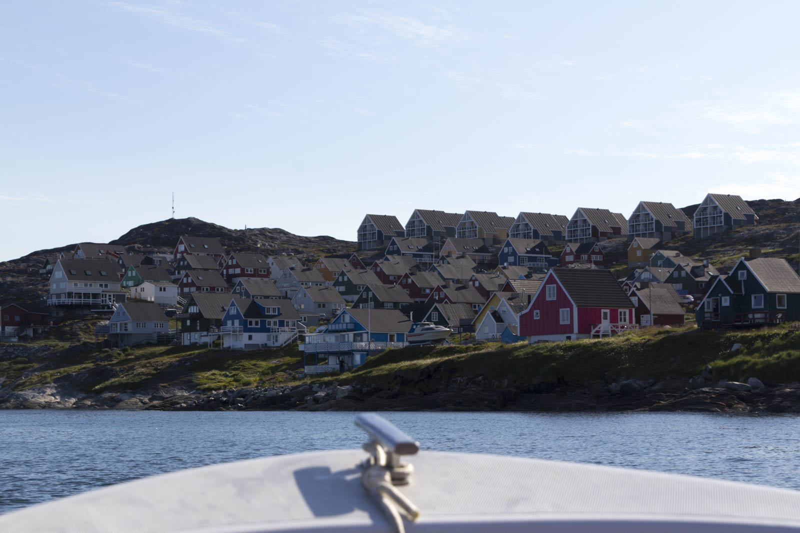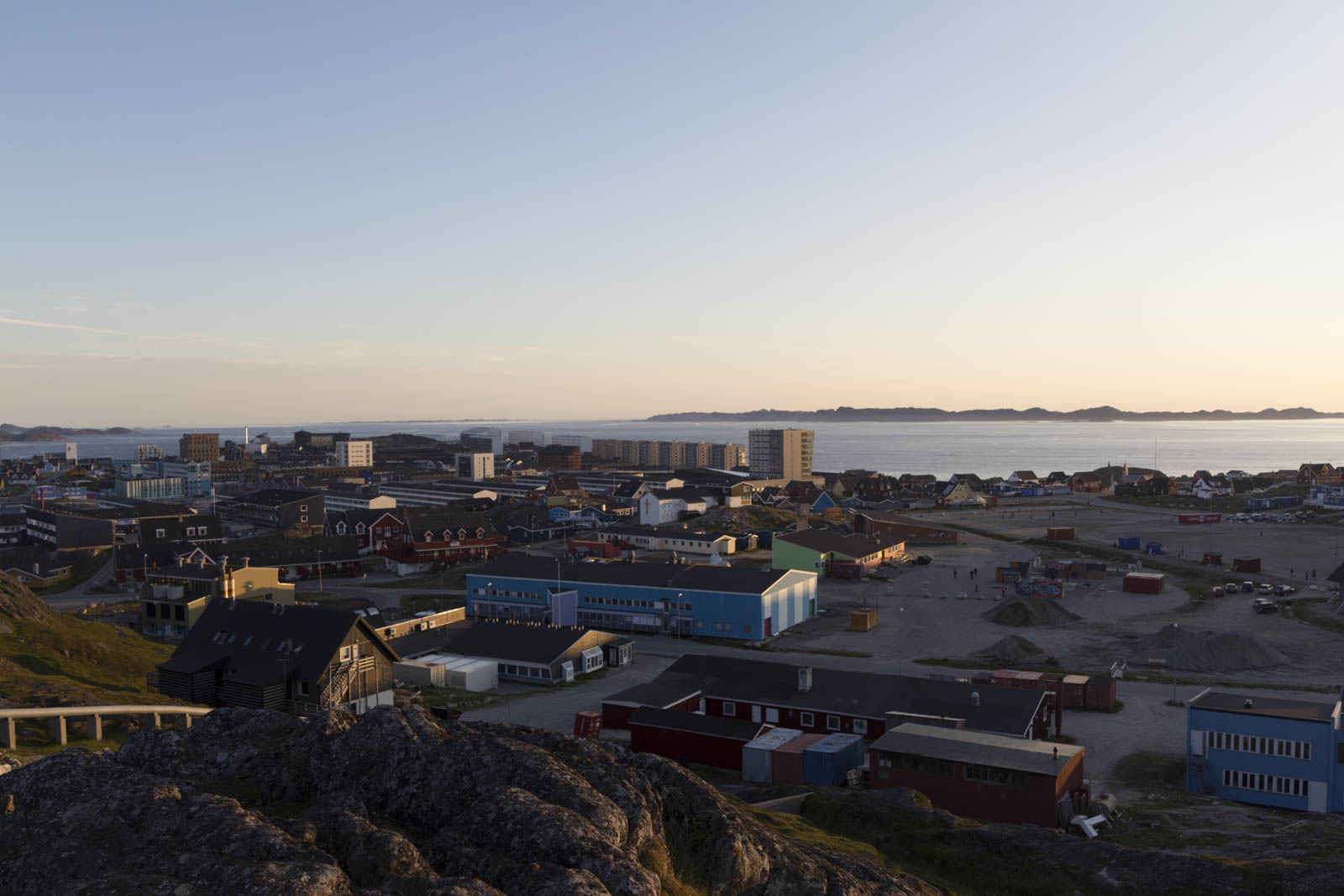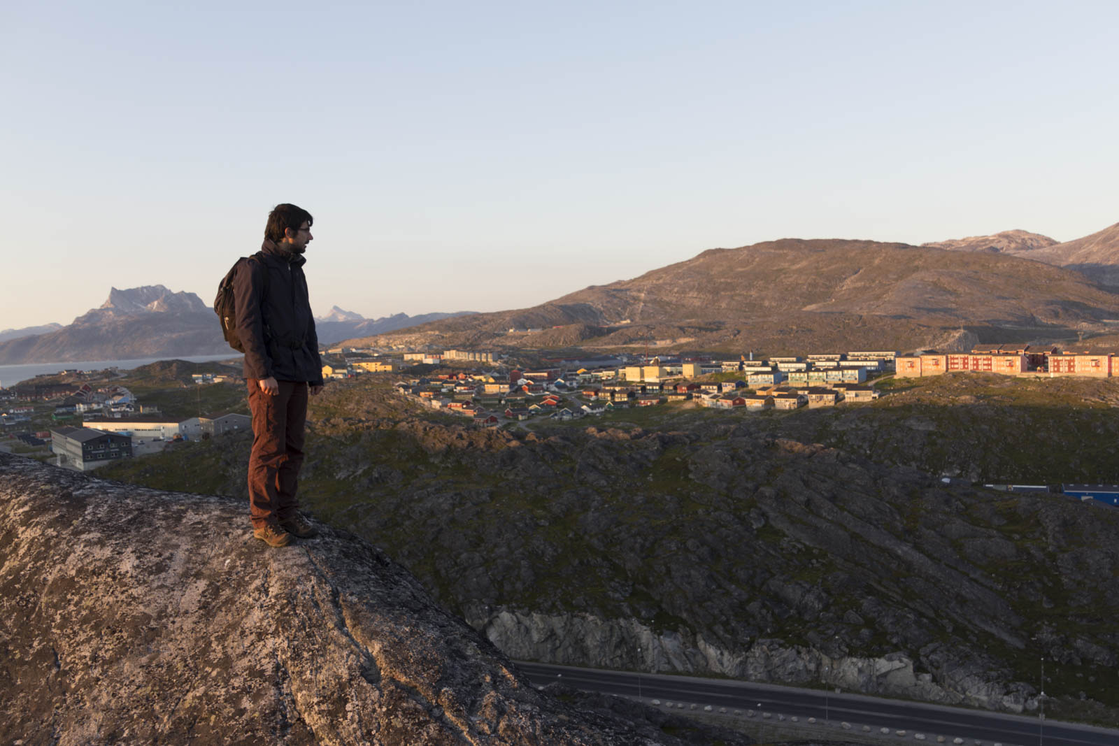 Quelques courses au big supermarché de Nuuk pour le tout le séjour (on y trouve même du comté, c’est dire qu’il est bien fourni !), une soupe dans un café avec Wifi (payant, comme partout au Groenland) pour annuler notre couchsurfing, puis on part poser notre tente sur une montagne, près d’une grande réserve d’eau et des antennes relais. Notre premier camping ! Notre premier camping sauvage en ville !
