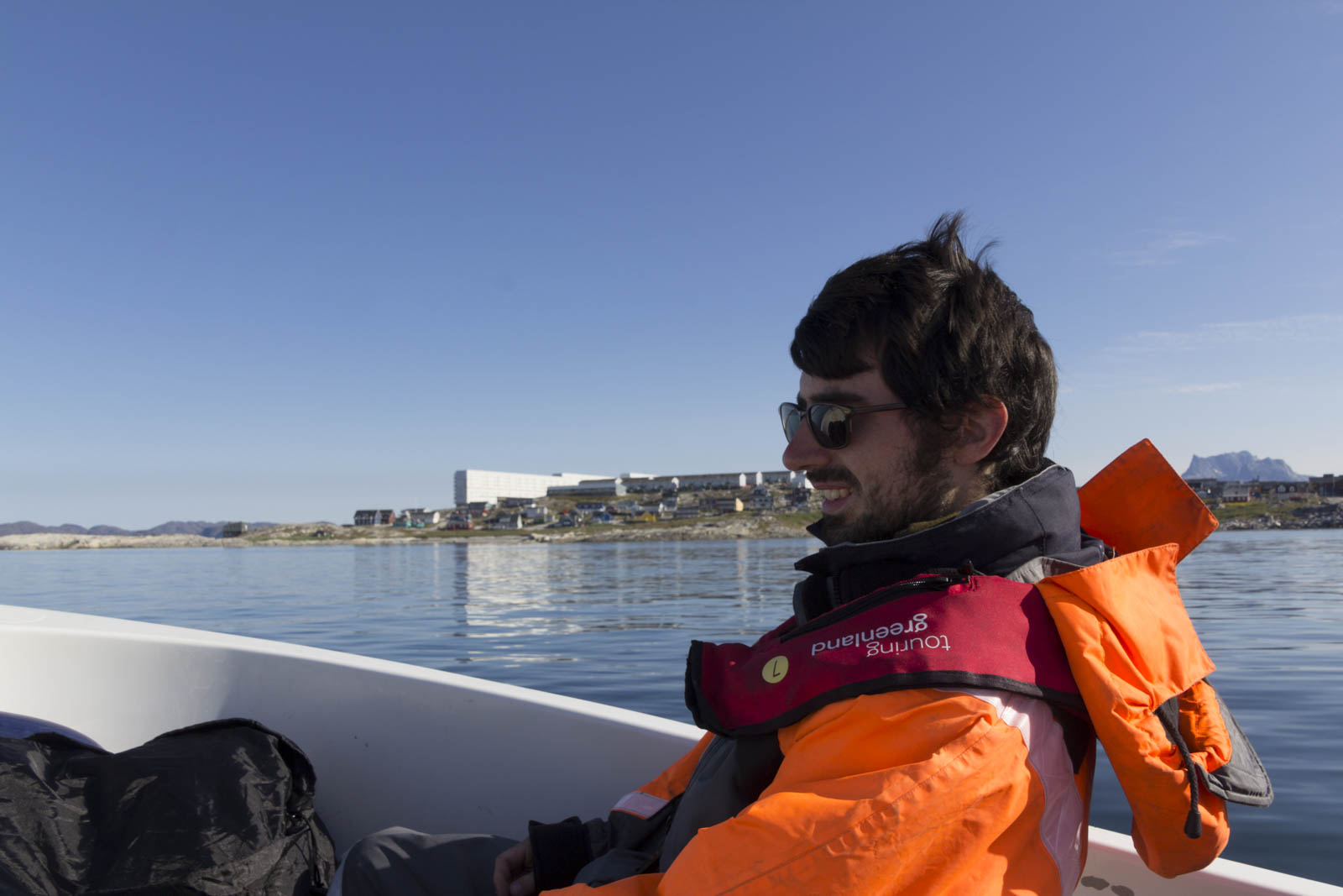 Nous prenons la direction de Kapisillit sur un bateau ouvert de 5-6 places, piloté par Anika, rencontrée la veille à Nuuk. Elle nous équipe d’une énorme combinaison orange censée nous maintenir au chaud et plus ou moins au sec si on tombe à l’eau… Rassurant.