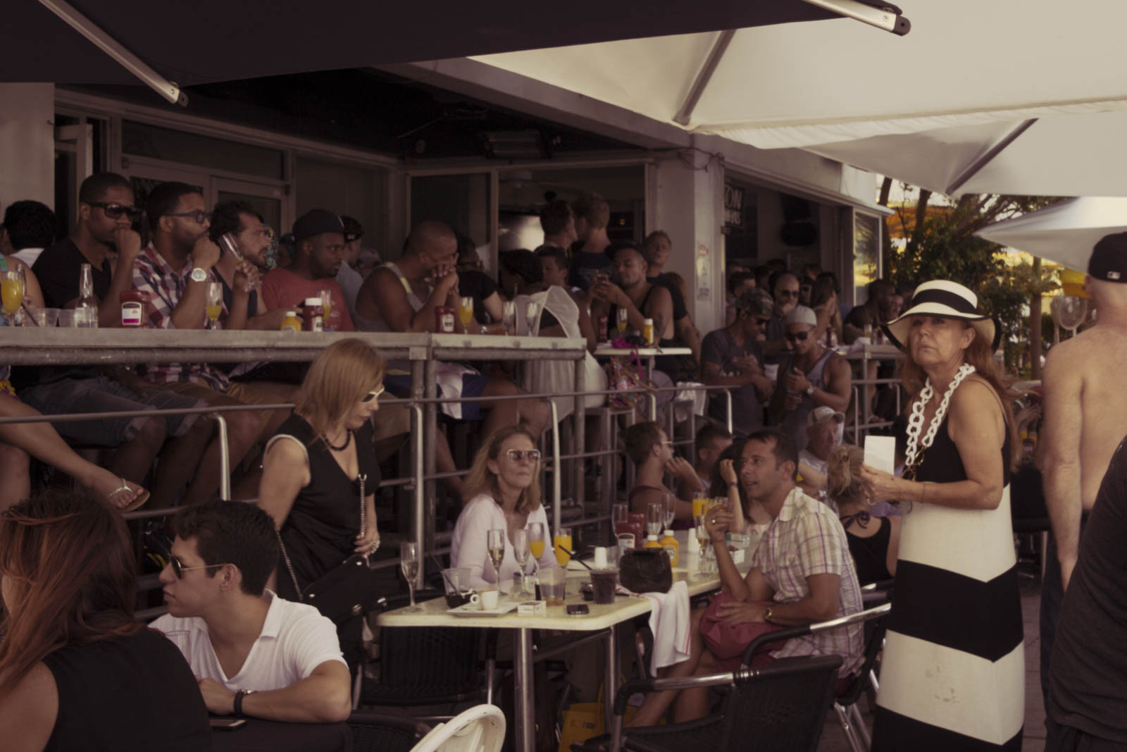Mais Miami Beach, c’est aussi et surtout un endroit où l’on vient pour se montrer et faire la fête : des grosses cylindrées devant les « bars branchés » et les bâtiments au style art déco, de la musique qui donne l’impression d’être en boîte toute la journée, des cocktails et happy hours à toute heure et plein de jeunes gens en maillot de bain qui montrent leur bronzage, leurs muscles ou leurs formes avantageuses, selon les sexes.