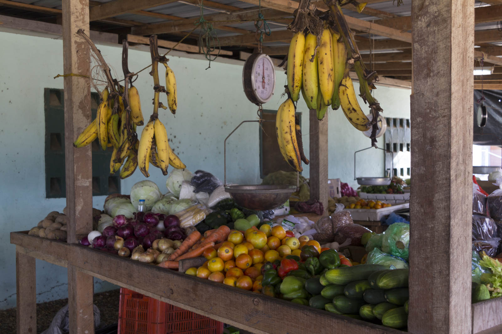 Avec les événements de la matinée, nous démarrons notre programme du jour seulement en début d’après-midi. Et on a failli tout savoir sur la culture Garifuna, mais pas de bol le musée était justement fermé le samedi après-midi. Alors on en a profité pour aller voir le marché de la ville. Assez petit, on n’y trouve que quelques étals de fruits et légumes. Par contre, les étals sont très diversifiés. Il y aussi un peu plus loin une zone pour les vêtements et l’artisanat local.