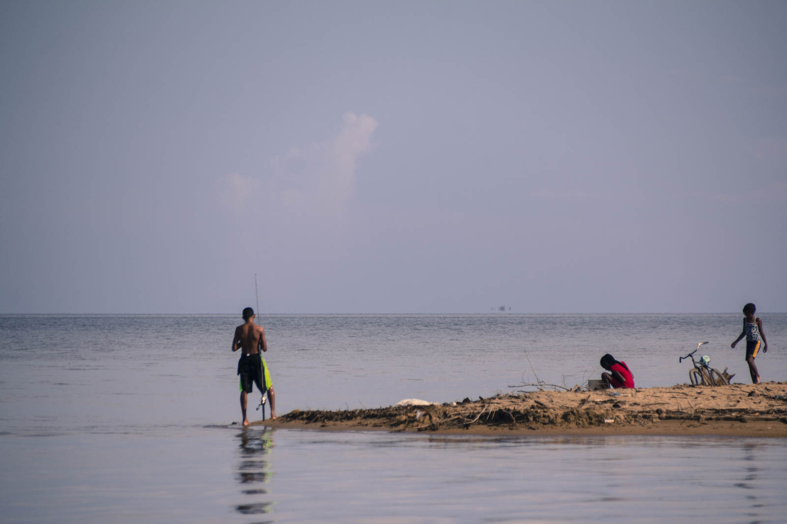 Après 1h30 de recherche, victoire ! Il a retrouvé l’appareil ! En soulevant des tôles posées contre la vieille maison, et un vieux sac en toile de jute derrière, il voit deux bidons de bateau empilés, plutôt propres. De la propreté dans ce merdier, bizarre… Et effectivement, au fond du bidon du dessous, bien enveloppé dans un t-shirt, il y avait notre appareil photo. Gros ouf de soulagement ! On ne pensait vraiment pas le retrouver, celui-là !