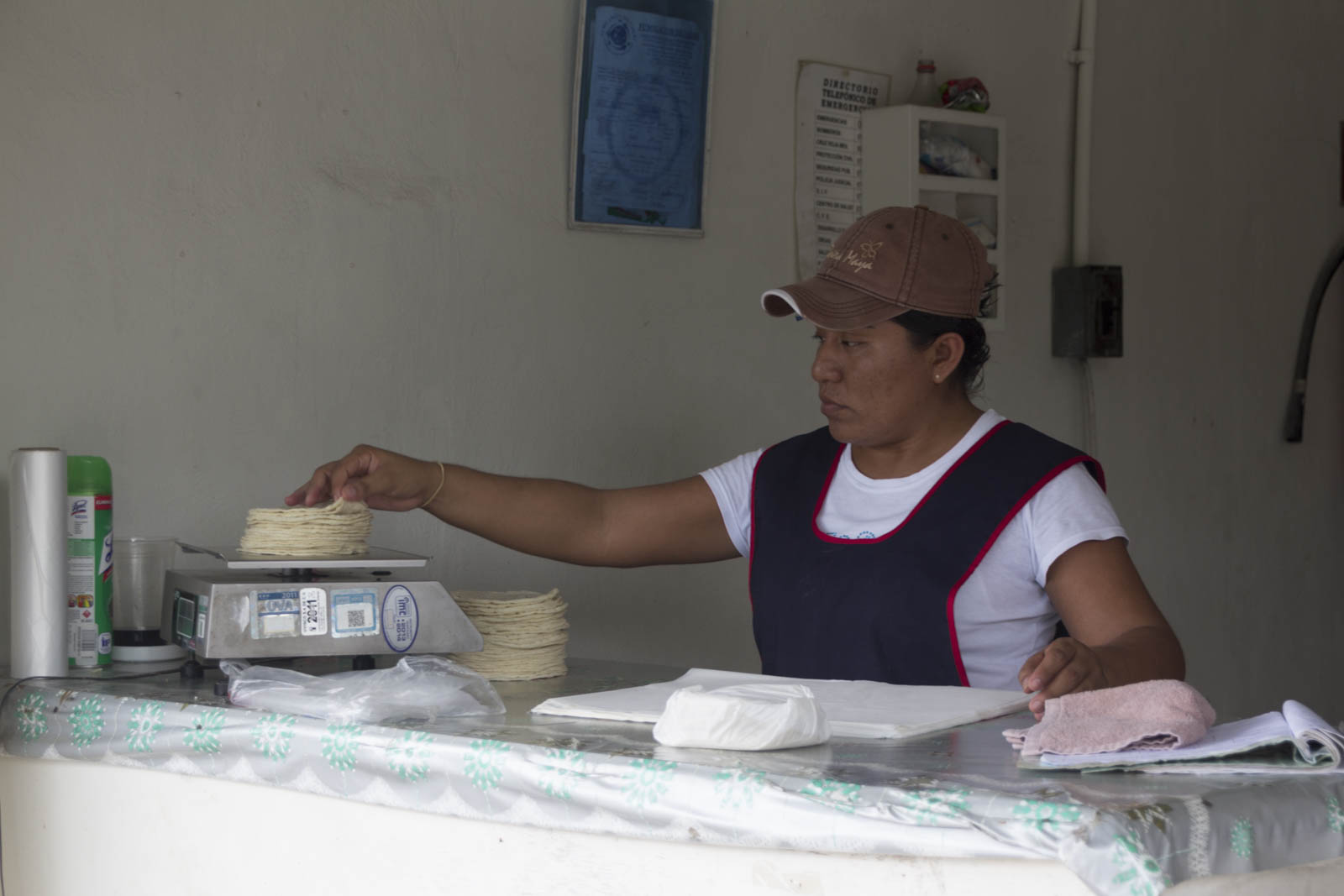 Au Mexique, on peut voir la fin du processus de fabrication dans de petites tortillerias en ville.