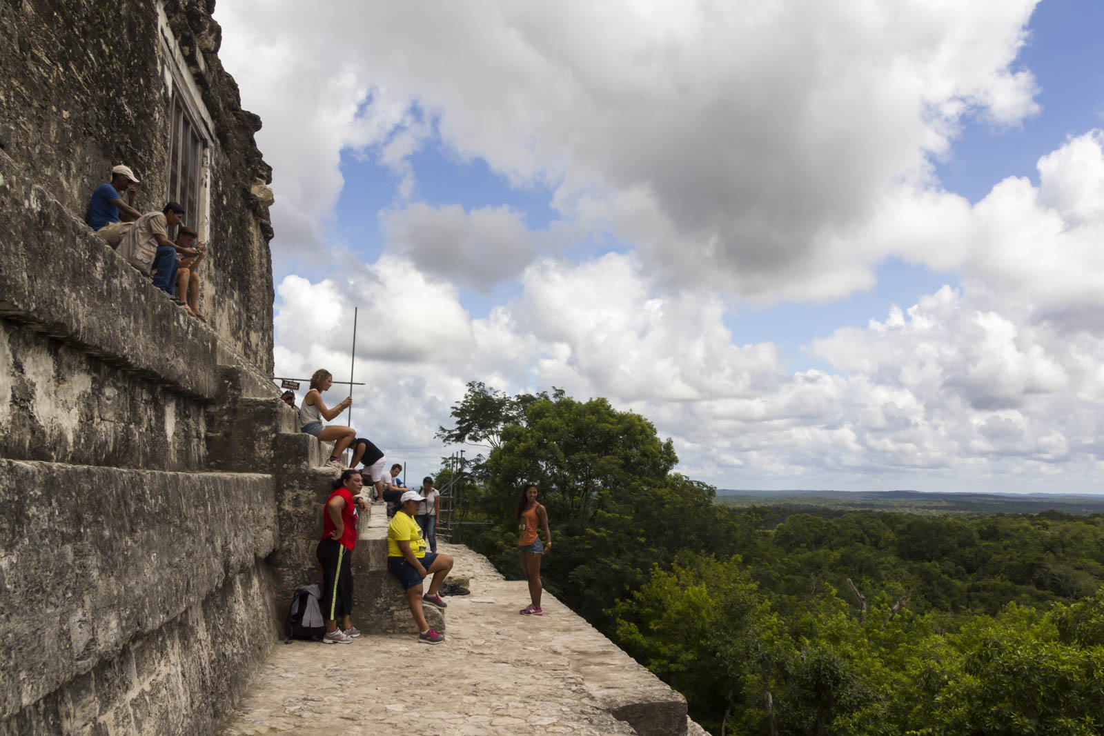 Outre cette faune, le site de Tikal regorge de ruines de la civilisation maya. Des pyramides et des temples de toute taille, en plus ou moins bon état et ce qui ressemble au cœur d’une ville. A chaque nouvel édifice, on est impressionné par la subtilité de l’architecture maya et le niveau de leurs connaissances en astronomie, en mathématiques ou en acoustique. Ainsi, à chaque équinoxe ou solstice, les ombres portées des différents monuments s’alignent dans telle ou telle direction, ou forment telle ou telle figure. Quelle ingéniosité !