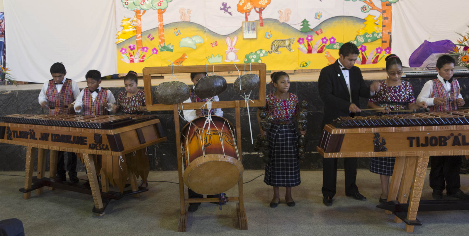 La marimba est une sorte de grand xylophone, avec des touches en bois qui sont frappées par de petits marteaux tenus par les musiciens. Et l’intérêt principal de cet instrument est qu’il se joue à plusieurs, chacun tenant 2 marteaux, ou 4 pour les plus confirmés. Et le rendu final lorsque 6 enfants jouent en même temps sur le même instrument est plutôt intéressant, au contraire des danses traditionnelles.