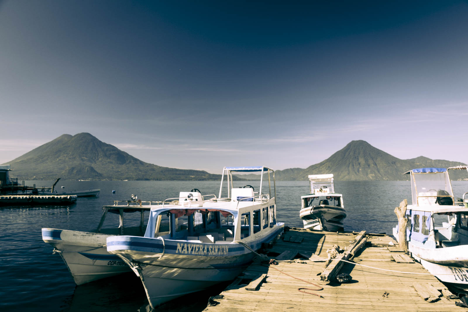 Le lendemain, après une dernière nuit dans la maison de Daniel, nous prenons la route d’Antigua. Deux possibilités : prendre 3 bus ou prendre un bateau pour traverser le lac puis 4 bus. Nous optons pour la seconde option, qui s’avère être un bon choix. La traversée du lac Atitlan en bateau nous permet de profiter une dernière fois de ces beaux paysages et de ces magnifiques volcans, vus d’en bas cette fois.