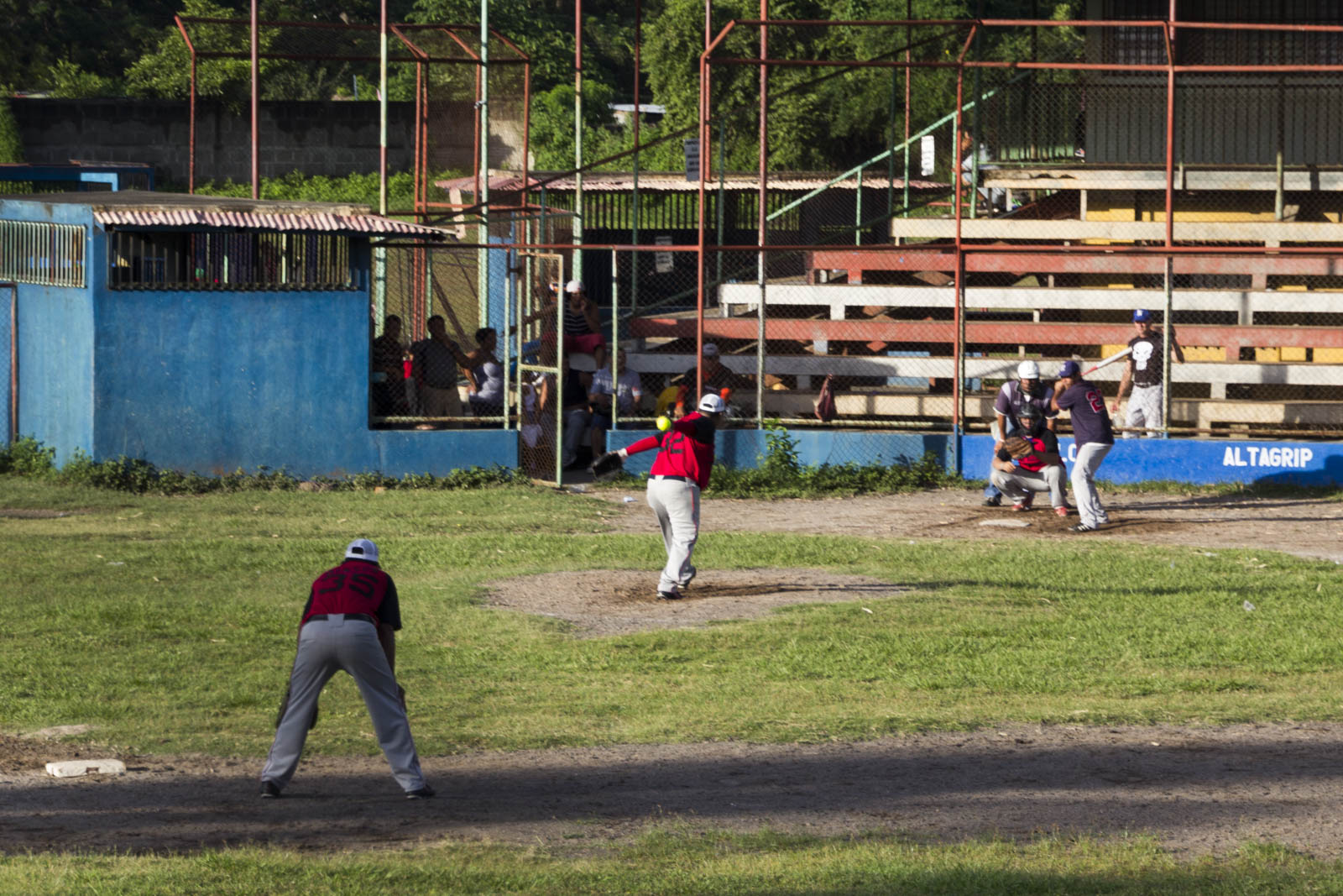 En flânant dans les rues de Granada ce dimanche, on a aussi découvert les activités dominicales locales : boire des bières et assister à des matches de base-ball (ou y jouer). Le base-ball a l’air d’être le sport numéro 1 là-bas. On ne s’y attendait pas ! On a aussi traversé l’artère la plus touristique de la ville, celle qui descend au lac, pleine de cafés, de marchands de glaces et de vendeurs de souvenirs ambulants.