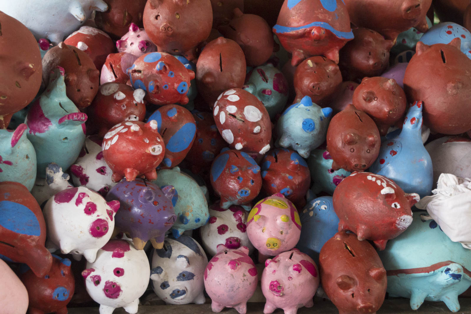 Comme au Guatemala, ce sont des marchés où l’on trouve de tout pour le quotidien : tous types de produits alimentaires, des vêtements, des produits d’hygiène et pour la maison, et même des tirelires !