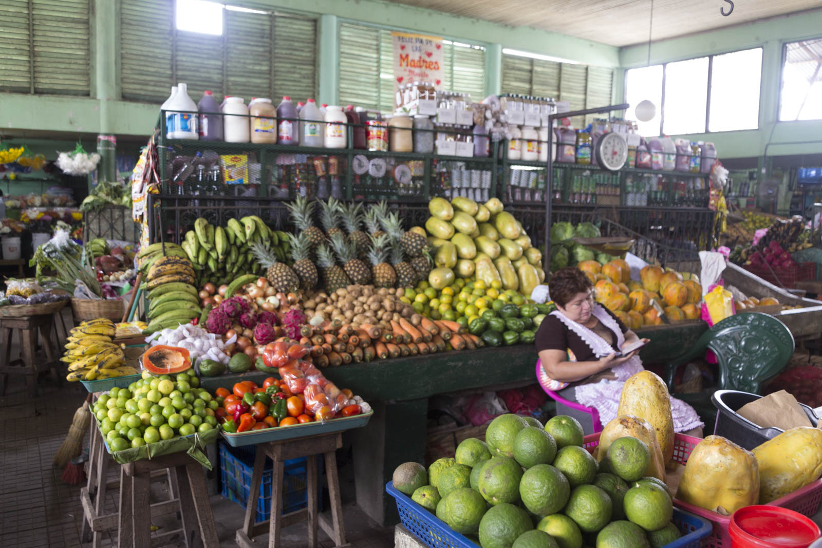 On a visité deux marchés importants du Nicaragua : le marché quotidien de Leon, dans les halles, et le marché du dimanche à Granada, qui s’étend sur plusieurs rues autour des halles.