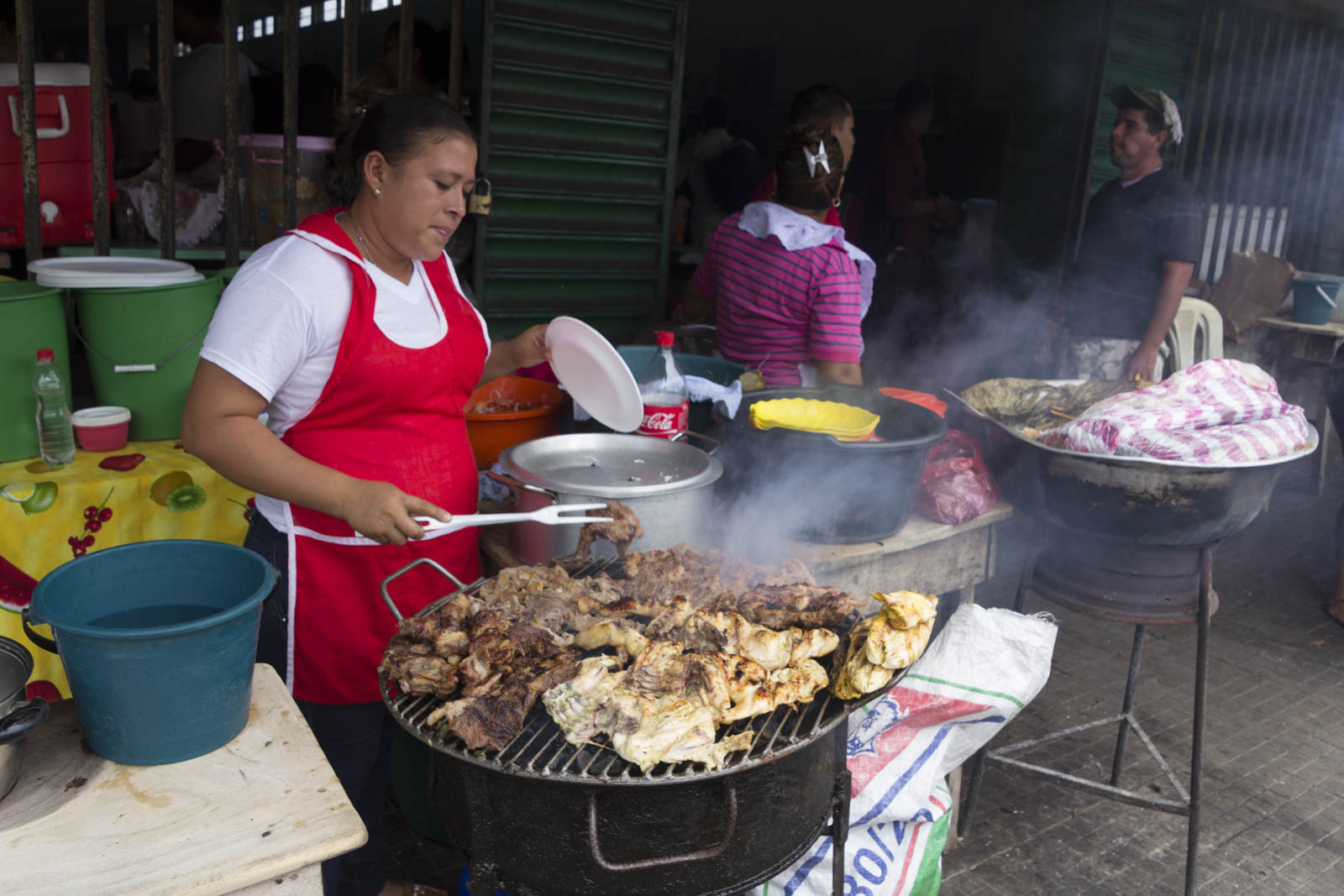 - Les petits barbecues plus ou moins improvisés sur les trottoirs, où l’on sert de beaux morceaux de porc, de poulet ou de bœuf, accompagnés de crudités et de gallo pinto (riz et haricots)