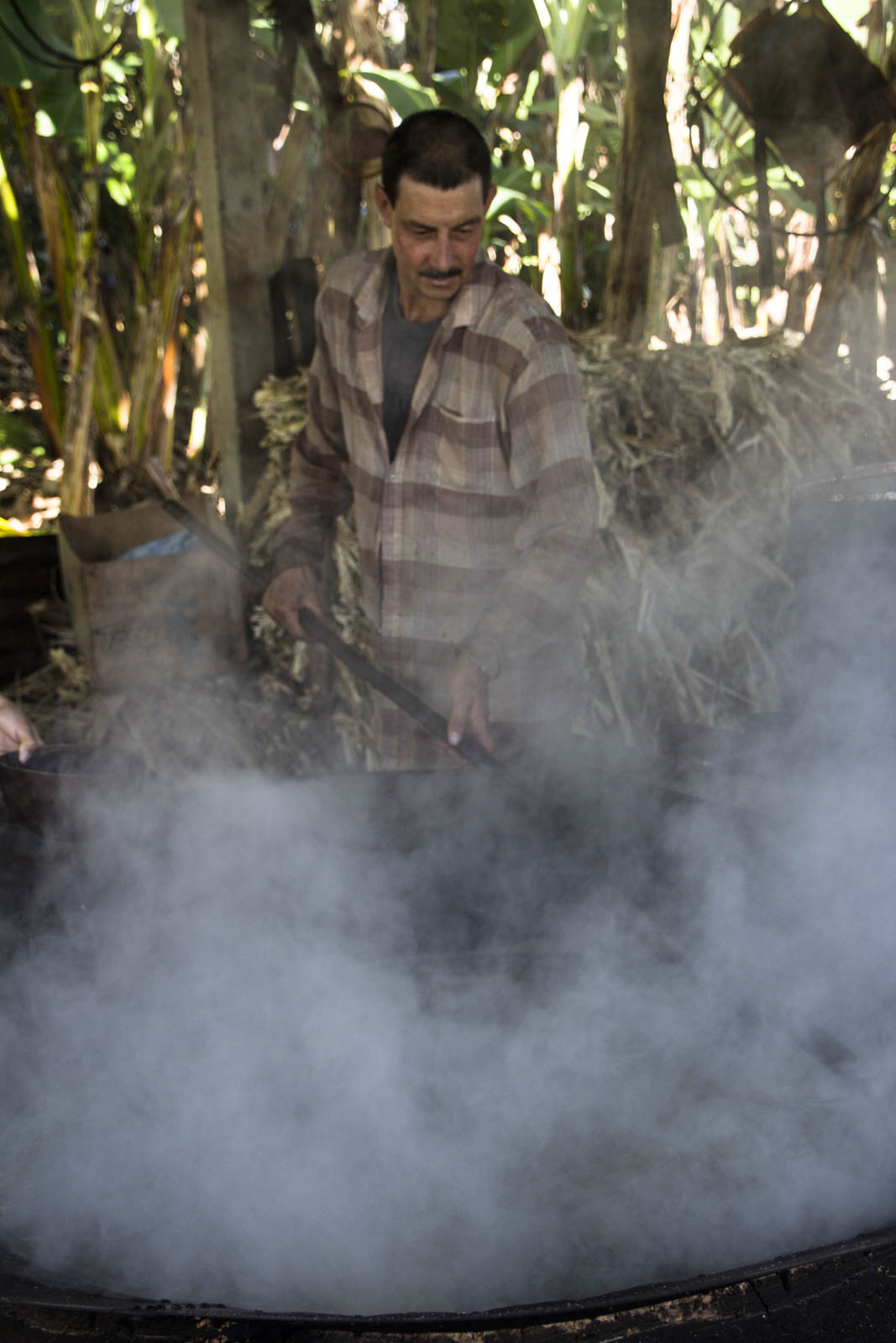 Une fois que toute la mousse a été enlevée, il faut continuer à chauffer pendant encore un long moment. Environ 3 heures. Pendant ce temps, Dago prend soin de nettoyer les moules dans lesquels durciront les tapas de dulce.