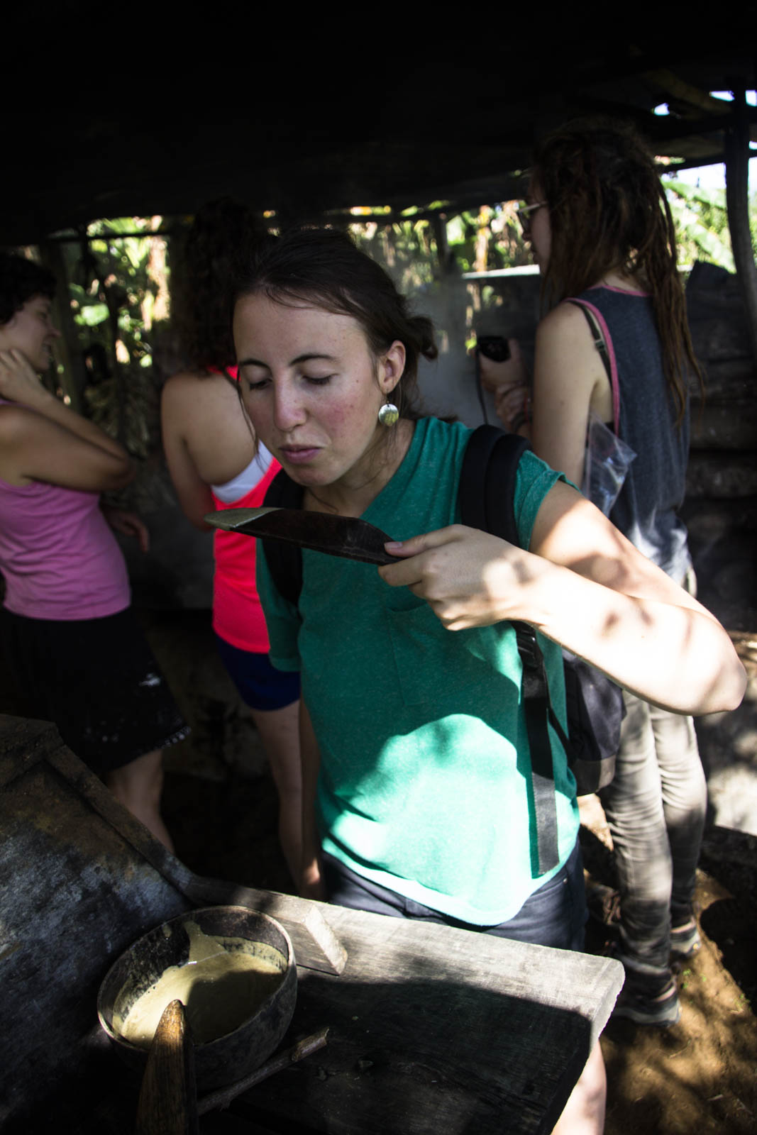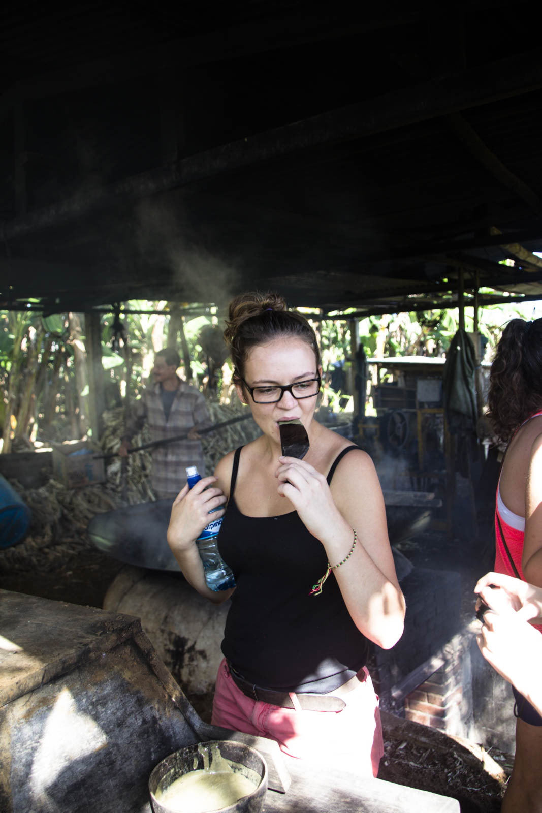 Un samedi matin à la finca, après le petit déjeuner, et après avoir nourri et nettoyé les animaux comme d’habitude, nous avons eu une très bonne surprise : Guillermo nous a tous emmenés chez son cousin Dago pour que l’on découvre la fabrication de la tapa de dulce. Chouette, une intéressante découverte culinaire et en bonus, pas de travaux à la ferme !
