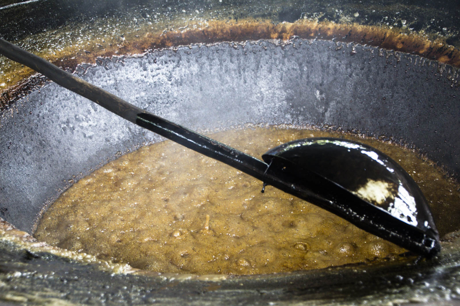 - Après quelques heures de cuisson, un bâton enduit du précieux liquide, que l’on déguste juste comme ça, en le laissant refroidir à l’air libre. Un peu pâteux, mais goûtu.