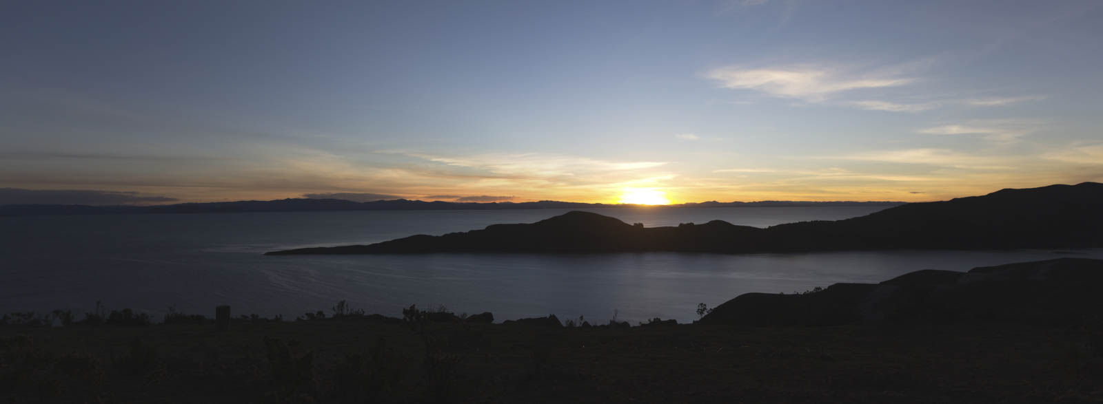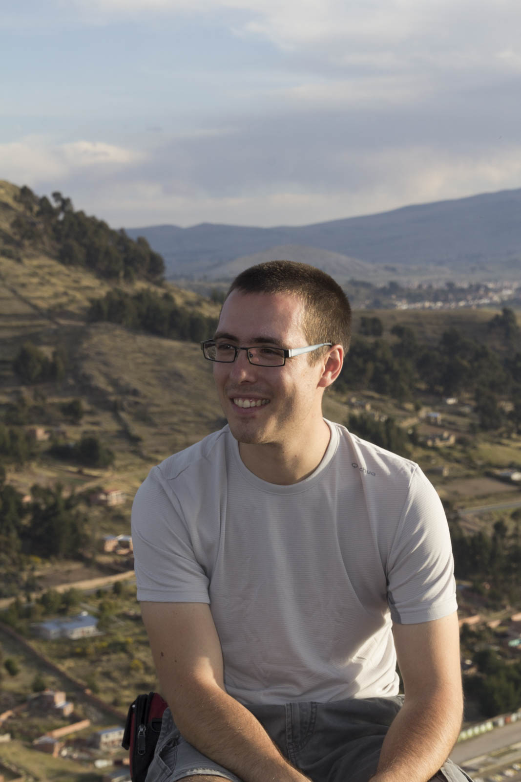 Malheureusement, en bus, on ne profite pas longtemps du décor car il descend rapidement dans la ville. Alors pour savourer un peu plus ce paysage et cette tranquillité, il nous faut regrimper sur une des collines autour de la ville. On opte pour le Cerro Calvario, qui en plus est un lieu de culte. Et en effet, un chemin retraçant le calvaire (d’où le nom de la colline !) du Christ sur le mont Golgotha part depuis le centre de la ville jusqu’à son sommet. Mais on n’a découvert l’existence de ce chemin qu’au retour, car on est monté en tirant tout droit depuis la plage, là où en fait il n’y avait pas vraiment de chemin… Faire un peu d’escalade à 3800 mètres d’altitude nous a ravigotés ! Une fois là haut, au moment du coucher de soleil, la vue est en plus magnifique : on aperçoit la petite ville en bas entourée de collines, la grande basilique Nuestra Señora de Copacabana, et de part et d’autre le Lac Titicaca et son eau bleue, profonde, et brillante. Encore une fois, les paysages boliviens nous émerveillent !