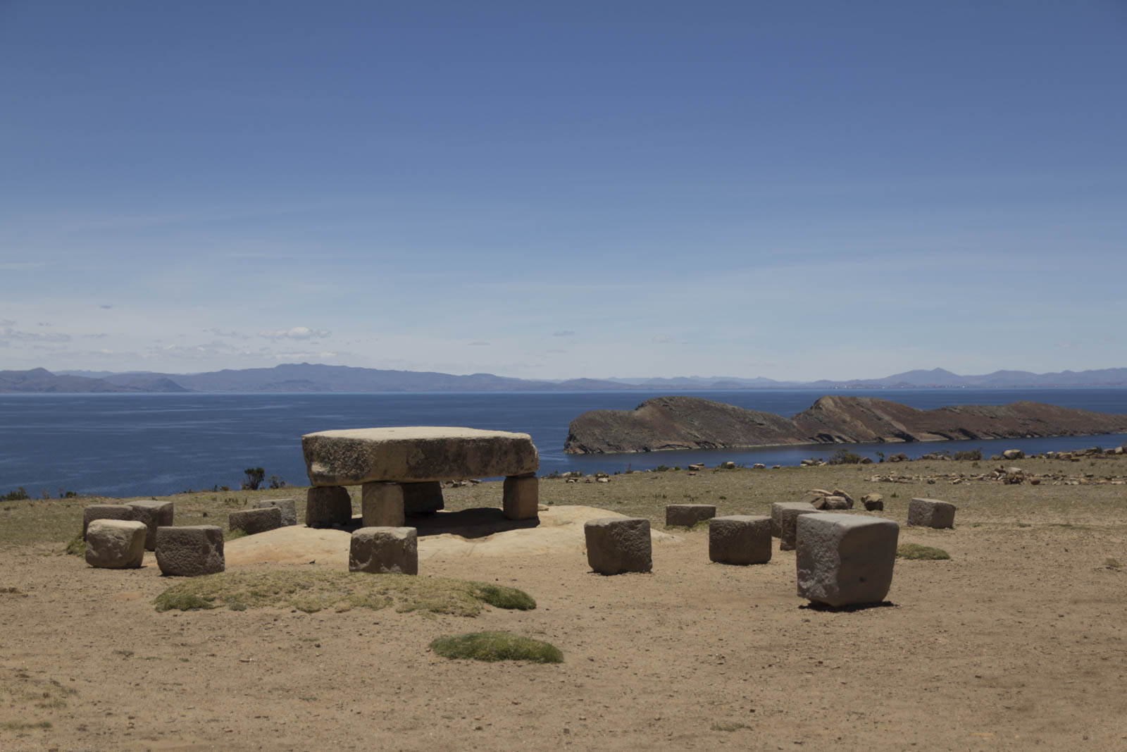 Arrivés à Challapampa, la communauté au Nord de l’île, tout le bateau se dirige vers le chemin qui permet de rejoindre Yumani, le village du Sud. Mais d’abord, un passage obligé par le musée, où l’on doit s’acquitter du droit d’entrée dans la communauté Challapampa (10 bolivianos). C’est le début du racket organisé sur l’île. Quant au musée, c’est une simple et modeste exposition de pièces issues de la civilisation Tiwanaku, un peuple qui vivait dans une large région autour du lac Titicaca, antérieurement aux Incas. La visite du musée, une dizaine de minutes tout au plus, nous permet néanmoins de laisser partir devant tous les autres touristes. On préfère cheminer tranquillement derrière.