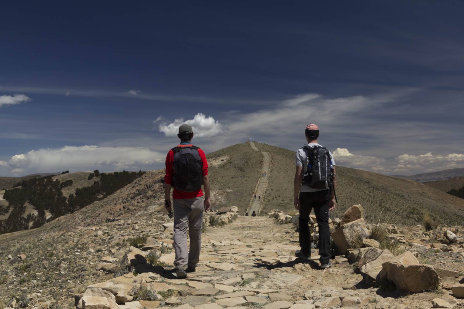 Le chemin qui traverse l’Isla del Sol passe d’abord par des ruines, celles de la civilisation Tiwanaku. Le relief vallonné de l’île, les vieilles pierres, le lac et le grand soleil qui nous accompagne rendent les paysages absolument somptueux. Nous prenons tout notre temps pour les savourer, et après 4h30 de marche, de pauses et de photos, nous arrivons au village du Sud, à Yumani. Seule ombre au tableau, les trois « péages » rencontrés en chemin, chaque communauté demandant un droit d’entrée et d’utilisation du chemin sur son territoire. Quel dommage d’avoir l’impression de devoir toujours mettre la main au portefeuille « pour marcher un peu plus loin » alors qu’au total on n’aura pas payé plus de 4€ !