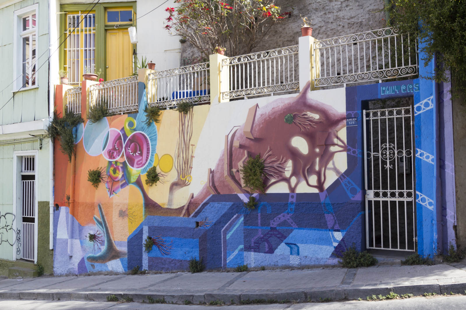 En ce qui concerne Valparaiso, on n’a pas vraiment succombé à son charme. Cette ville nous a été présentée comme une « ville-bohème », sale, avec beaucoup d’art urbain, d’animation et de chiens errants. Soit. On a donc fait un « free walking tour » de la ville pour s’en faire une meilleure idée. Mais celui-ci ne nous a pas emballés, loin de là. Le tour donne effectivement un aperçu intéressant de la ville et de son histoire, mais la récitation rapide du texte appris par cœur par notre guide gâche l’ensemble. La ville n’est pas si sale qu’on le dit, les chiens errants sont bien là, mais comme partout en Amérique du Sud finalement et les couleurs du street art n’auront pas suffit à nous faire succomber aux charmes annoncés de cette ville. Bref, une déception urbaine.