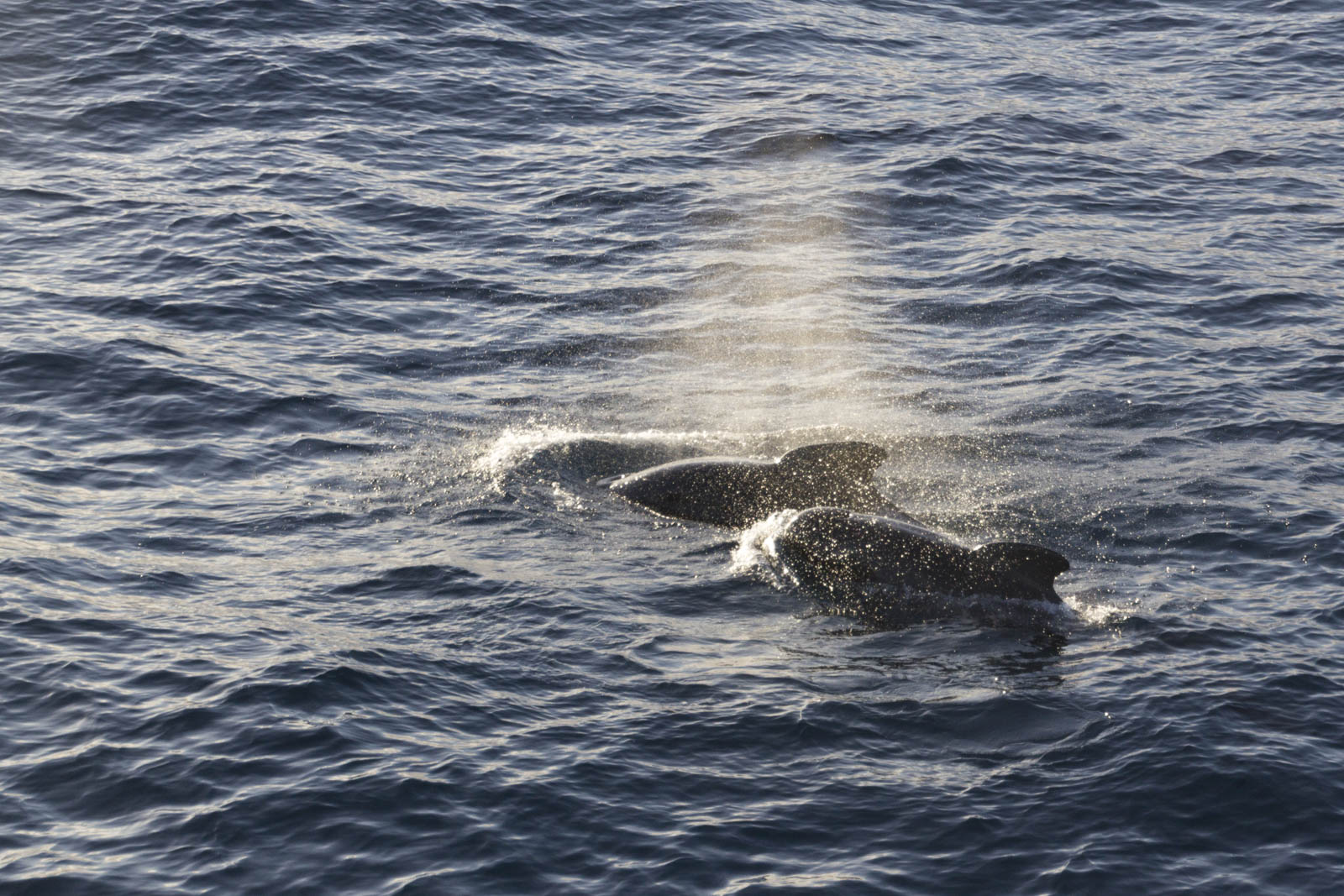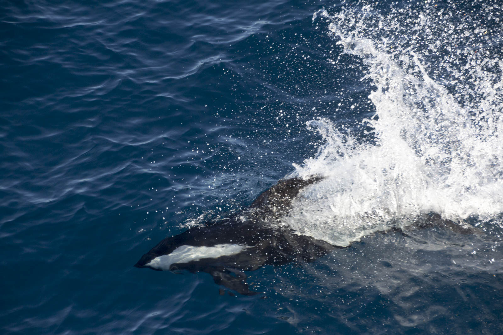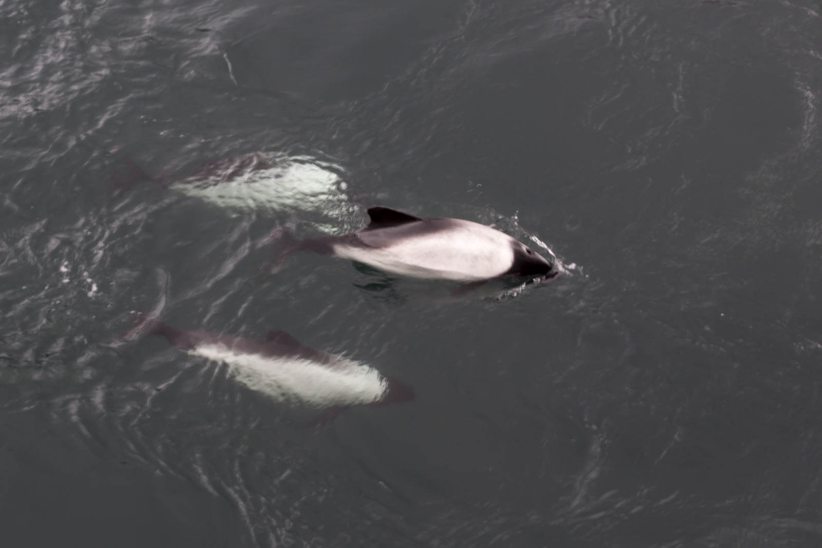 En restant sur les ponts extérieurs, notamment en pleine mer, on a aussi eu la chance de rencontrer des dauphins, des baleines, et même des orques ! Bref, des cétacés. Bien entendu, comme ils passent la majorité de leur temps dans l’eau, ils sont bien plus difficiles à observer que les oiseaux… Quoique pour les dauphins, ça va encore. Bien que petits, ils sont très joueurs, et font même tout pour se faire remarquer : ils se baladent en petits groupes, font plein de petits ou de grands sauts hors de l’eau, vont et viennent à proximité du bateau. Quand ils sont là, on ne peut vraiment pas les rater !