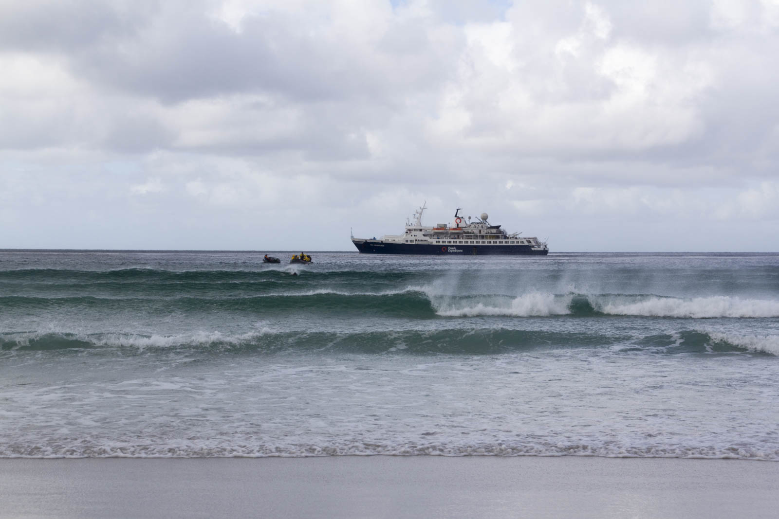 Ensuite, au large des Malouines, pour profiter de leurs collines verdoyantes qui surplombent de magnifiques plages, seulement investies par les manchots et les oiseaux qui viennent y nidifier et couver leurs petits. Et c’est sans doute bien mieux comme ça !