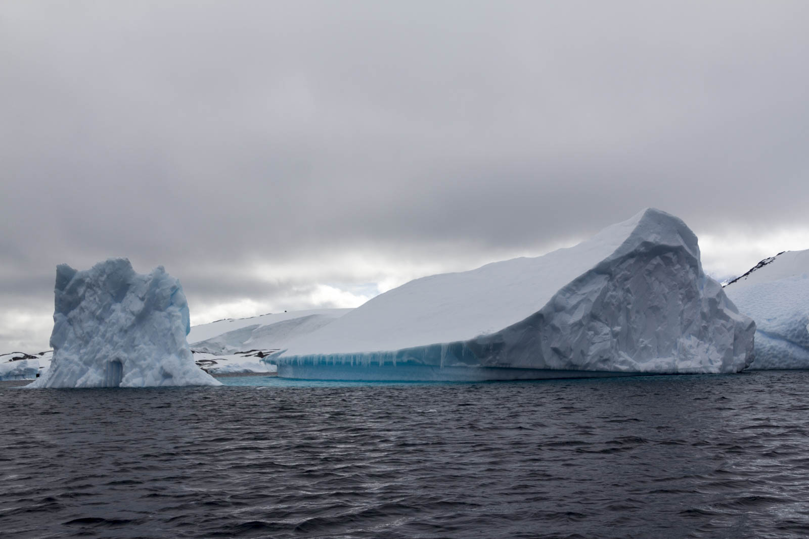 Et puis il y eu l’Antarctique ! D’abord, les îles sub-antarctiques, où on a rencontré nos premiers icebergs. Il y en a de toutes tailles et de toutes formes : du petit glaçon à l’énorme bloc haut comme trois fois notre bateau, de l’iceberg tabulaire tout plat, presque coupé au cordeau, à celui de forme bien plus aléatoire, indescriptible, sans parler des nuances de couleurs allant du blanc pur au bleu profond. Les glaciers du coin nous ont vraiment offert leurs plus belles pièces !