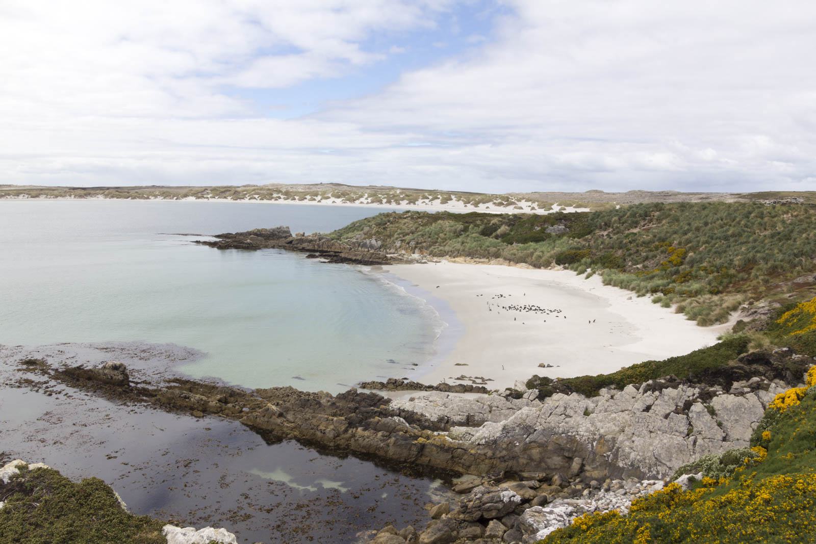 En effet, hormis un débarquement à caractère plus urbain à Stanley, capitale des Falkland, tous les débarquements que nous avons faits ont été autant d’expériences différentes au cœur de la nature. Et encore, à Stanley, nous avons immédiatement décidé avec Sandrine de fuir les bars avec wifi et les boutiques de souvenirs. Car il y avait une réserve naturelle un peu plus loin, que nous avons rejointe en auto-stop ! Et là-bas, nous avons pu faire une chouette randonnée, juste tous les deux, et nous délecter de la présence de quelques oiseaux nidifiant sur les rochers et d’une petite colonie de manchots sur une plage vierge… Enfin pas si vierge que cela, à cause des nombreuses mines disséminées çà et là lors de la guerre des Malouines ! Heureusement que les petits gentoo penguins (manchots papous) sont trop légers pour les amorcer. Mais j’espère qu’il n’y a jamais eu d’éléphants de mer sur cette plage !