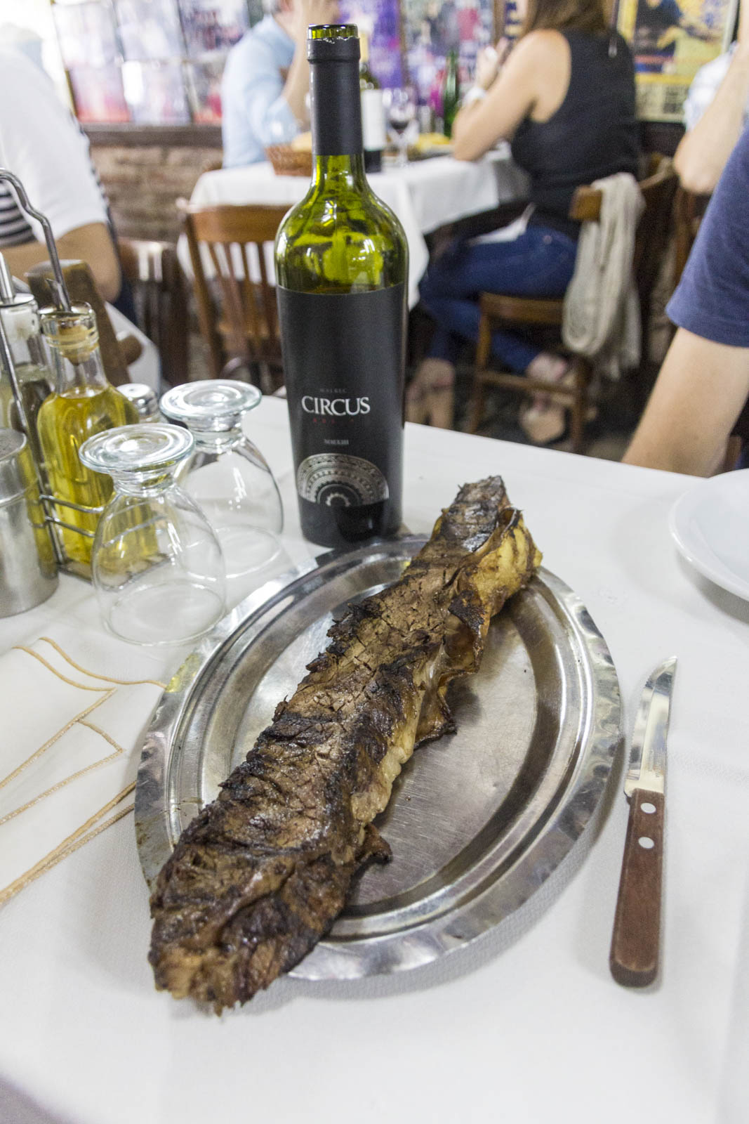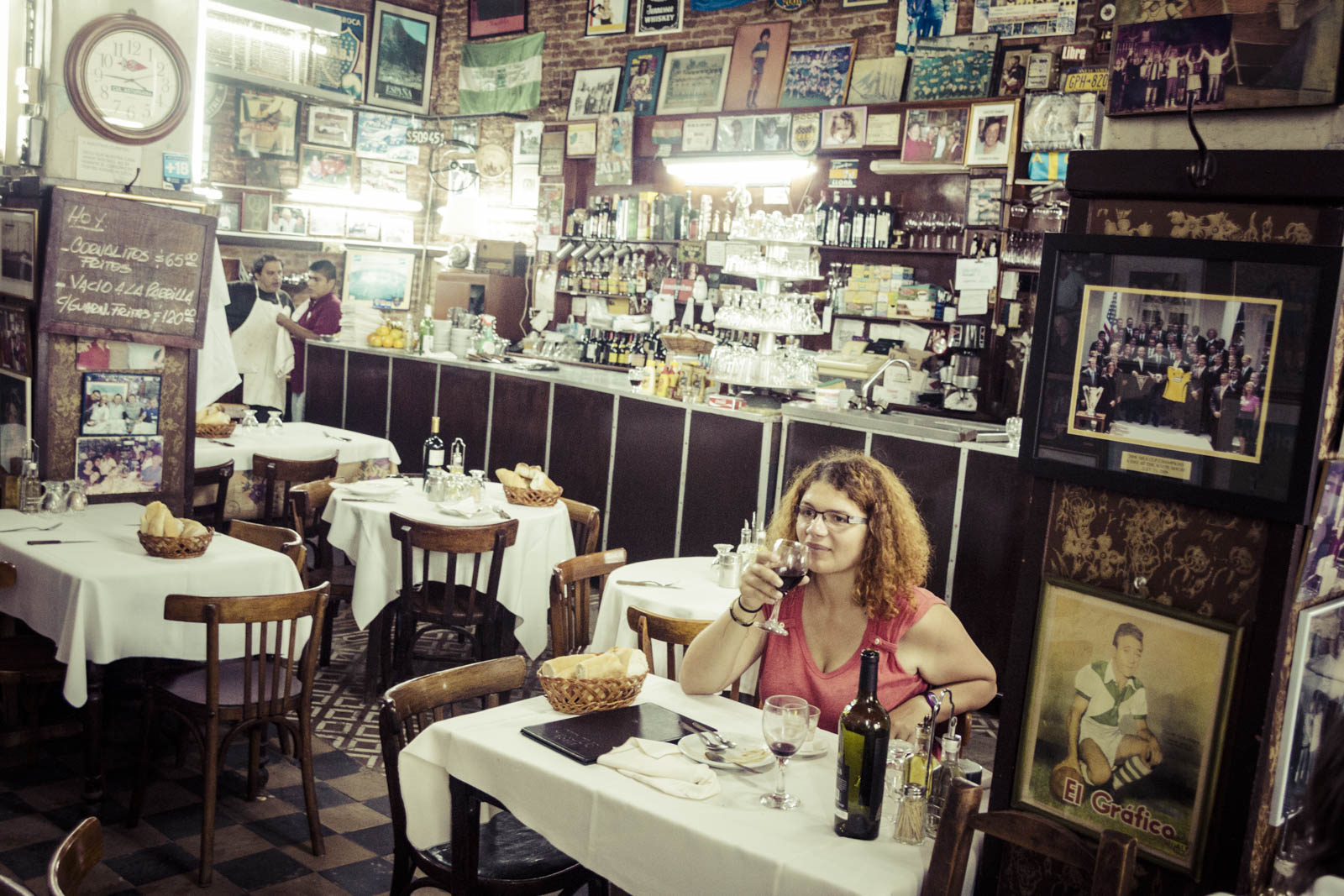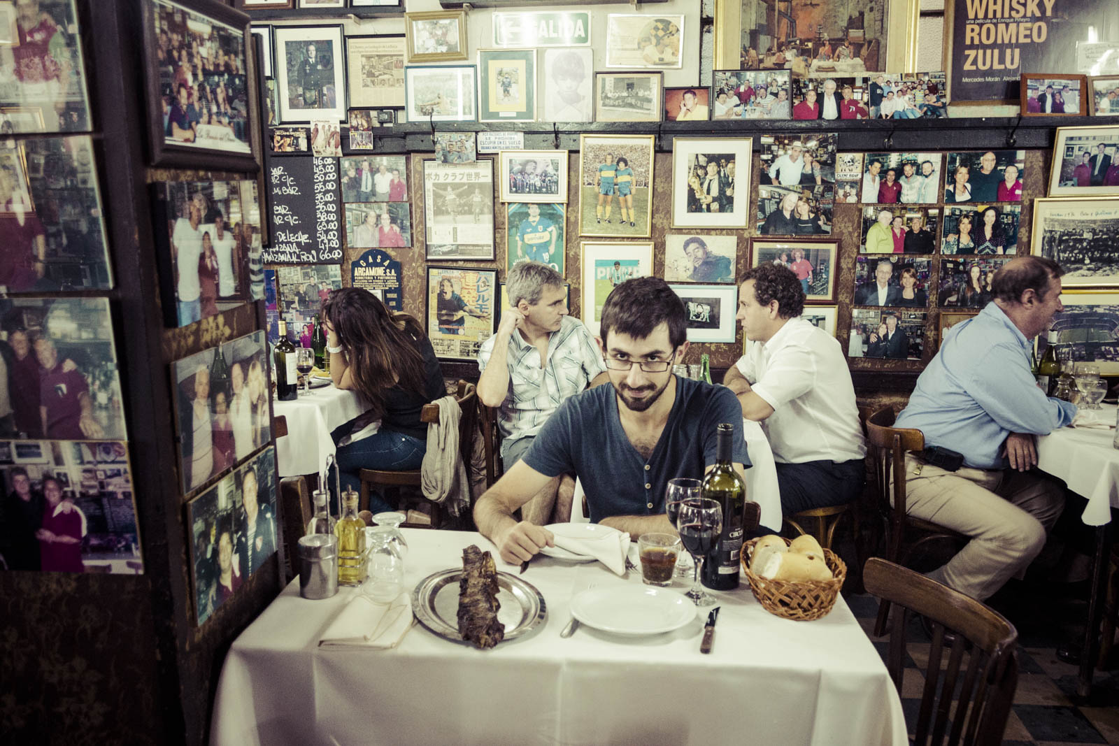 Et puis, surtout, c’est à La Boca qu’on a mangé notre meilleure viande d’Argentine. A l’opposé du Caminito, géographiquement comme touristiquement, dans une petite rue sans intérêt à l’entrée de La Boca, le restaurant El Obrero ne paie pourtant pas de mine. C’est un endroit décoré dans le style d’une cantine populaire, qui propose néanmoins de savoureux – et généreux – bouts de viande, très bien grillés, à un excellent prix (320 pesos – 21 € – pour deux, avec une bouteille de vin et un dessert). On recommande !