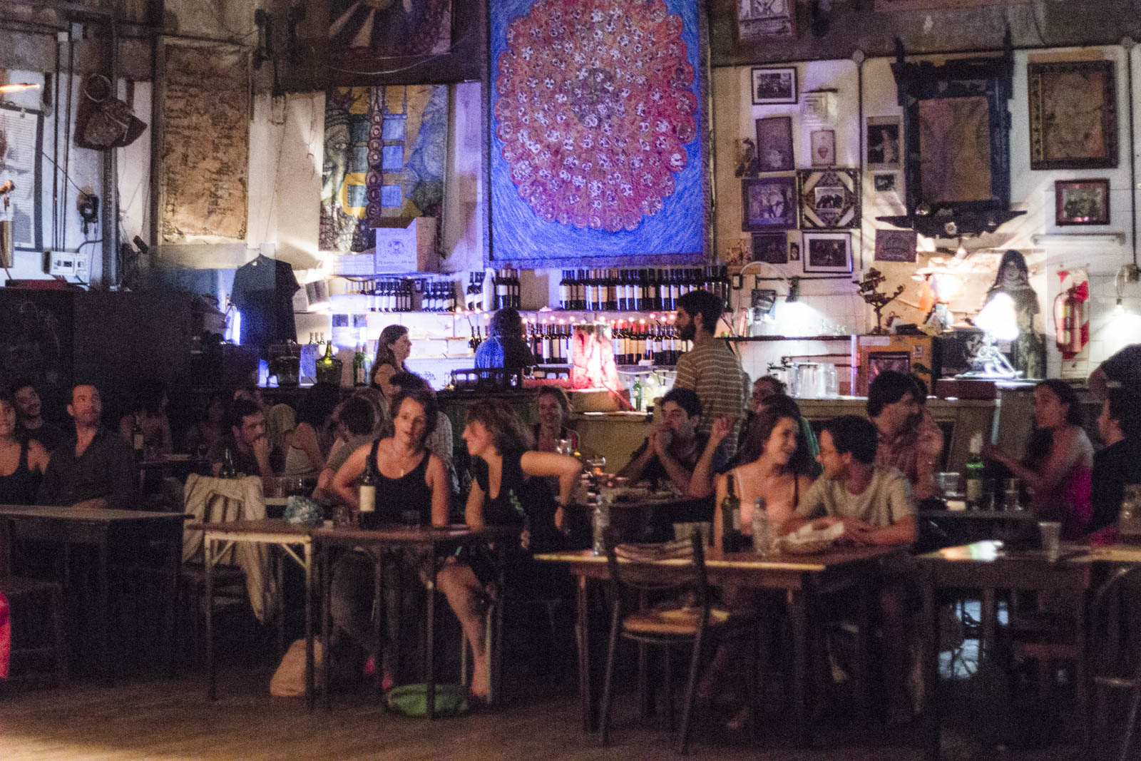 C’est aussi dans ce quartier de San Telmo que nous avons retrouvé, plus longuement cette fois, Fabian et Lisanne. A l’occasion d’une soirée couchsurfing. Un bar dans une cour assez stylée, des tables et des chaises à l’étage sur la terrasse, un film projeté en plein air sur le mur du bâtiment en face : le concept de la soirée était plutôt intéressant. Sauf qu’elle a démarré vers 20h30 – 20h45, et le film à 21h00. Sauf que les bières n’étaient pas au frais quand les gens sont arrivés. Sauf que c’était un film très déprimant et de presque 3 heures, de Lars Von Trier – mais malgré tout un très bon film. Et sauf qu’à la fin du film, à minuit, le bar a fermé. Avec tout ça, il ne reste plus beaucoup de temps pour discuter avec les gens et faire des connaissances, ce qui est quand même le principe d’une soirée couchsurfing, enfin pour nous en tout cas. Du coup, on a fini la soirée avec nos amis allemands dans un autre bar, jusque 3 heures du matin.