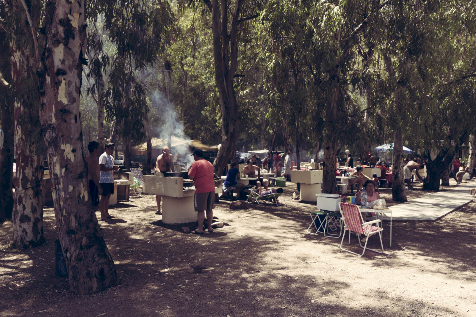 L’occasion aussi de découvrir l’asado du dimanche en Argentine : une vingtaine de barbecues en pierre sont installés au bord du lac, ils sont tous plein. L’ambiance est joyeuse, les gens sont entre amis ou en famille, ils viennent discuter avec nous et nous offrent même un peu à manger. Il faut dire que les pièces de bœuf sont énormes et les chapelets de saucisses longs comme le bras.