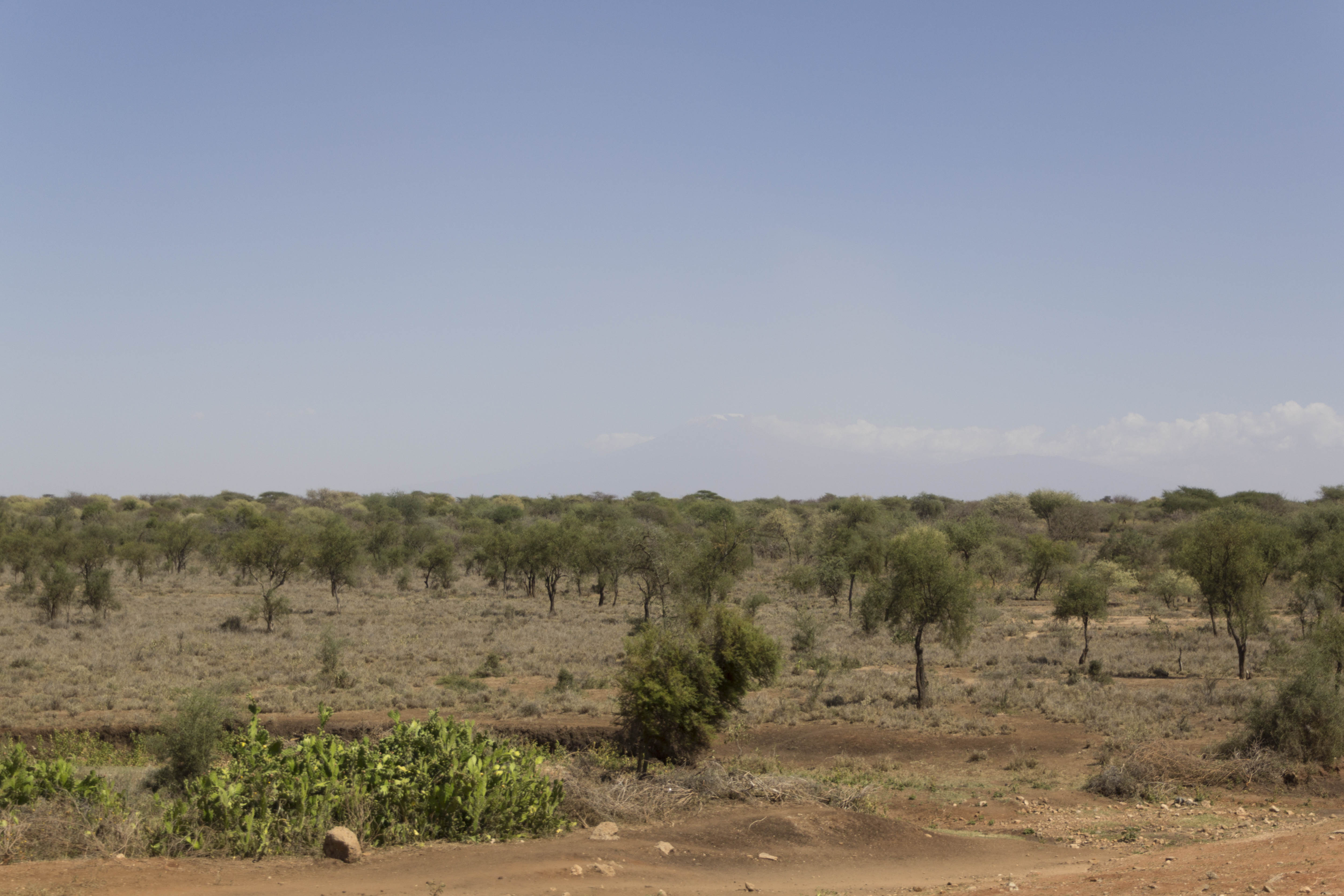 Enfin, le paysage commence à prendre de la hauteur. On croise nos premiers zèbres qui paissent tranquillement dans la savane. Le ciel est parfaitement dégagé, hormis quelques nuages là-bas au loin, qui semblent s’échapper du sommet d’une grande montagne. C’est le Kilimandjaro ! Nous commençons à distinguer les nuances de blanc tout en haut : il n’y a pas que des nuages, il y a aussi les neiges du Kilimandjaro. Je fredonne l’air dans ma tête : « elles te feront un blanc manteau, où tu pourras dormir, dormir, dormir, bientôt… »