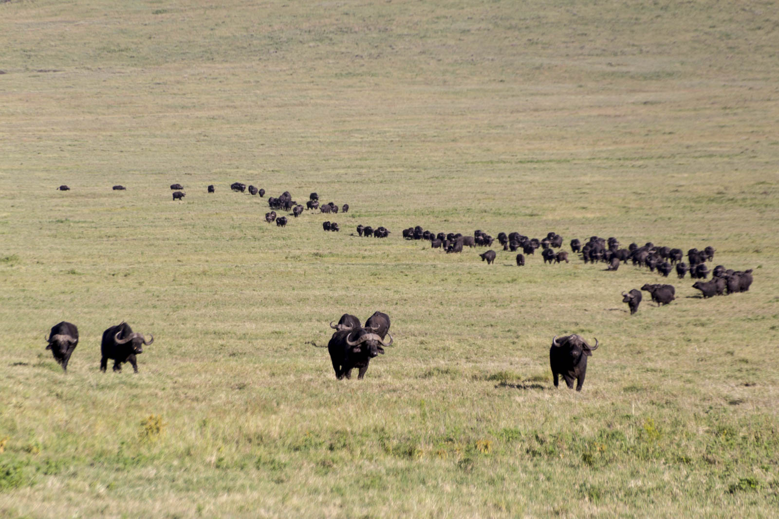 Ca commence tout de suite assez fort, puisque quelques buffles sont déjà là à l’entrée du cratère. Le buffle, ainsi que le lion, l’éléphant, le rhinocéros et le léopard forment ce que l’on appelle le « Big Five » , les cinq espèces animales terrestres les plus difficiles à chasser à pied par l’homme. Et même si aujourd’hui, la chasse à pied a quasi disparu, le Big Five, lui, est resté, notamment chez les amateurs de safaris.