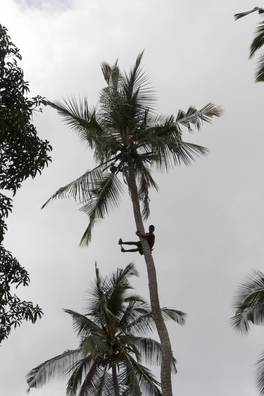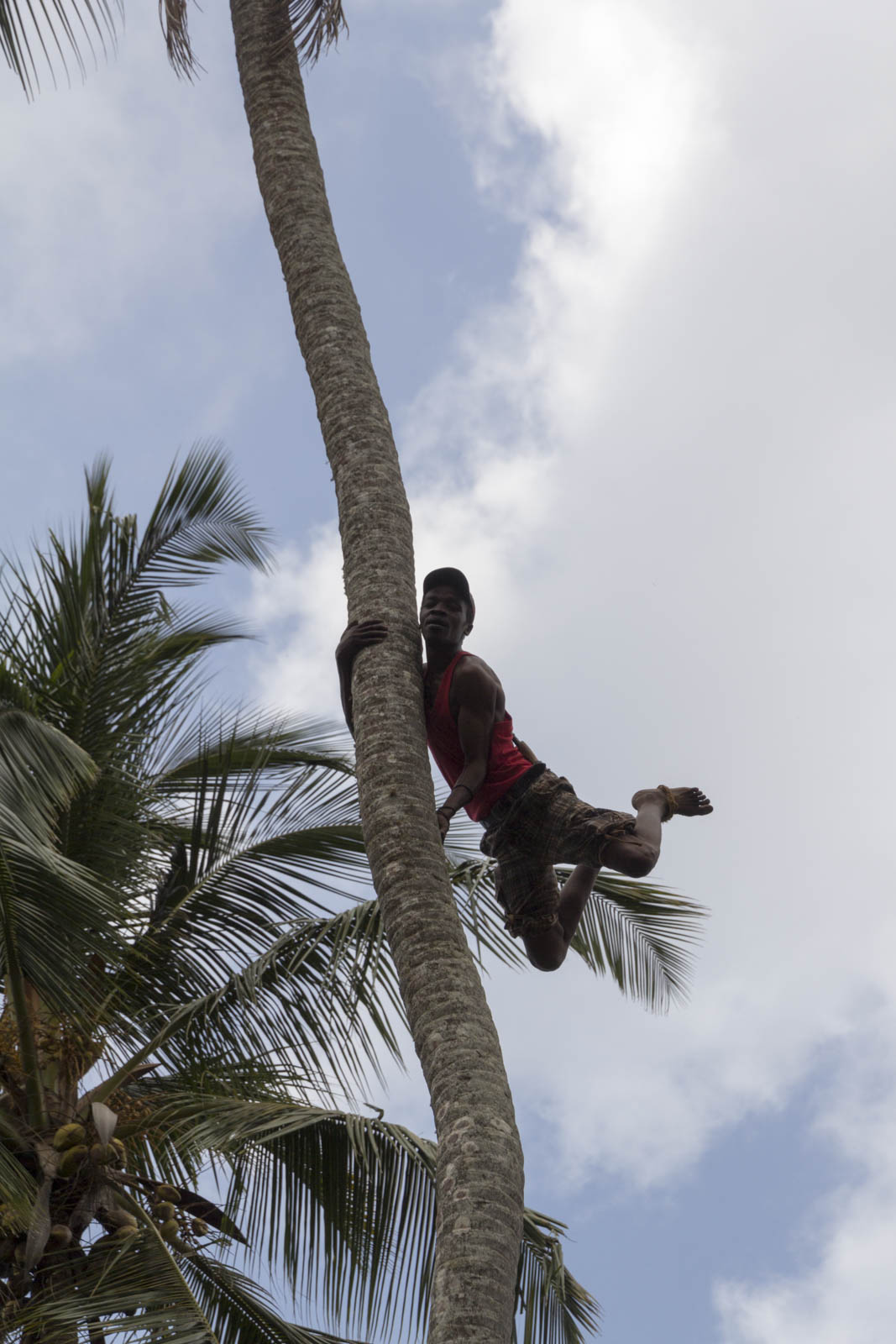 Nous assistons également à l’ascension d’un immense cocotier par un autochtone, à pieds et mains nus, sans corde et en chantant. Ce n’est pas un défi stupide, c’est vraiment la façon traditionnelle d’aller cueillir des noix de coco, en haut d’un arbre à 15 mètres au-dessus du sol – aux quelques acrobaties prétentieuses près.