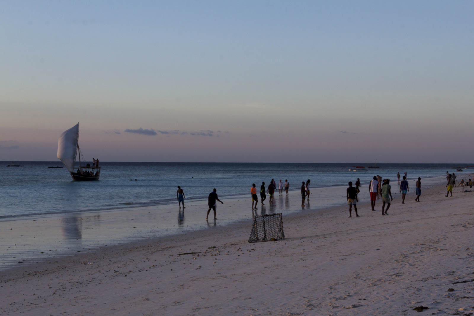 Nous sommes également sortis de la zone balnéaire pour une balade dans le village de Nungwi et ses environs. Nous traversons d’abord des rues poussiéreuses, non pavées, entourées de maisons de terre cuite. Nous croisons quelques enfants en uniforme, sur le chemin de l’école. D’autres jouent au foot sur la grande place dans le centre du village, pieds nus sur un terrain de terre, avec trois branches de chaque côté pour former les buts.