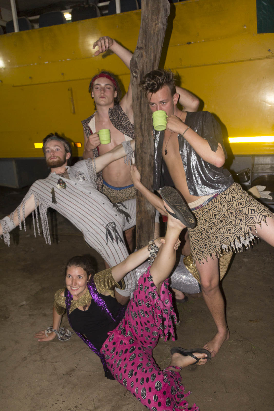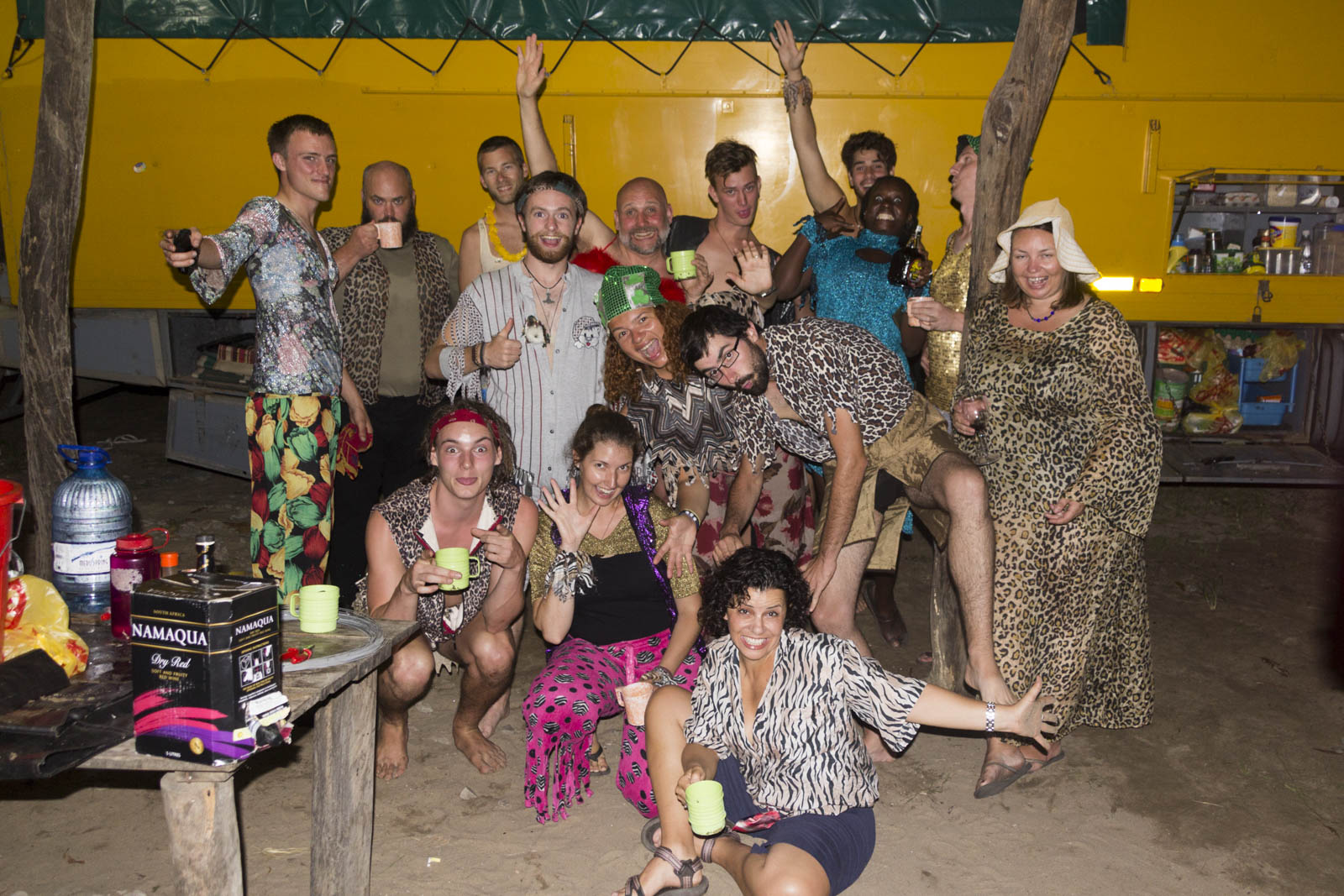 Quant aux déguisements, oui, ça aussi ça fait partie de la tradition. Il y a quelques jours on a tiré le nom d’une personne d’une groupe et on lui a acheté une tenue. Sympa comme concept. Benoît est tombé sur Pete, notre chauffeur, qui héritera d’une tenue à paillettes : un pantalon moulant blanc, une chemise dorée et un chapeau vert. Sandrine a acheté une sorte de pyjama pour Nick, avec les petites mitaines qui vont bien…