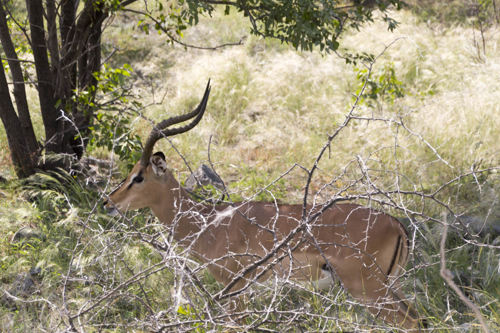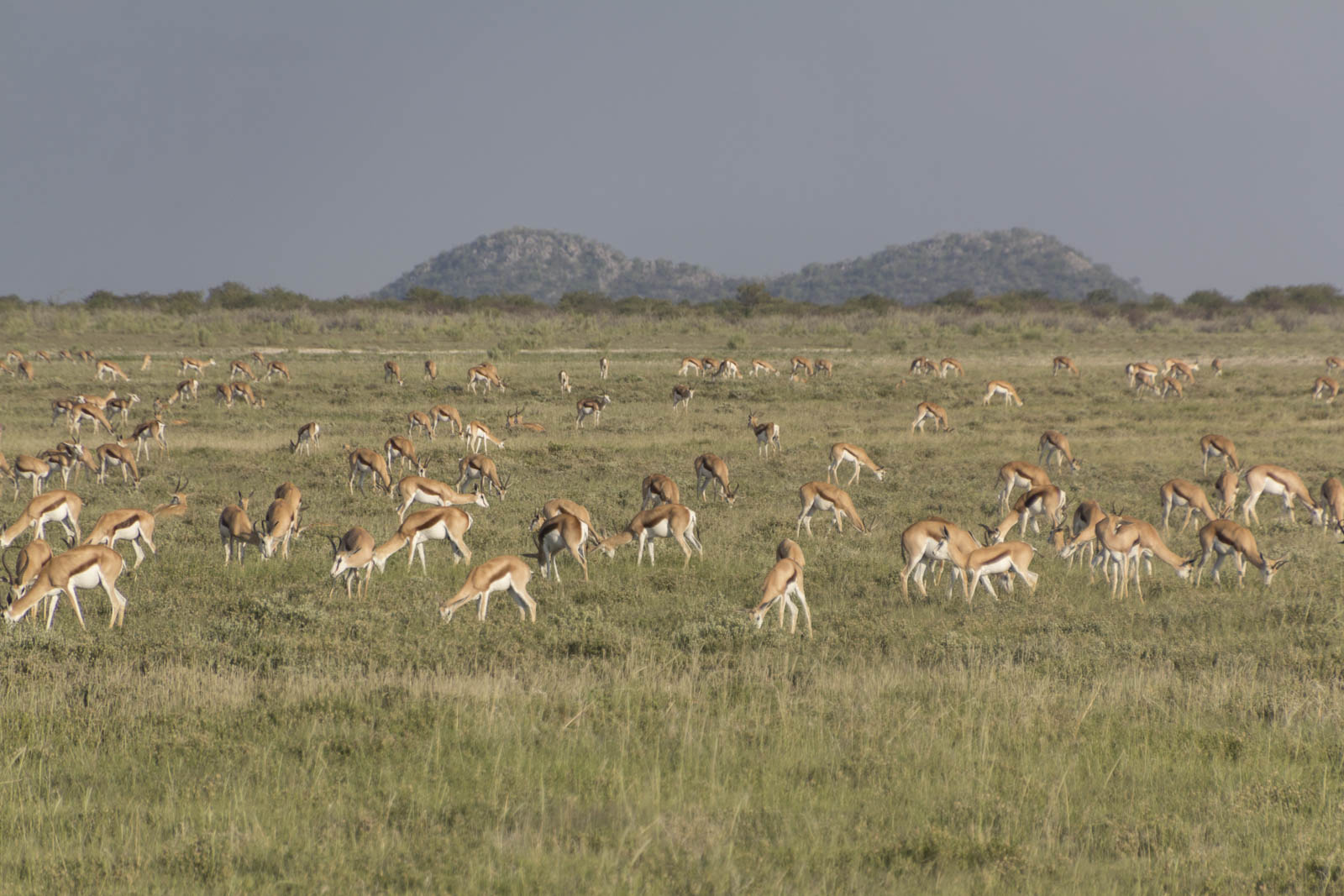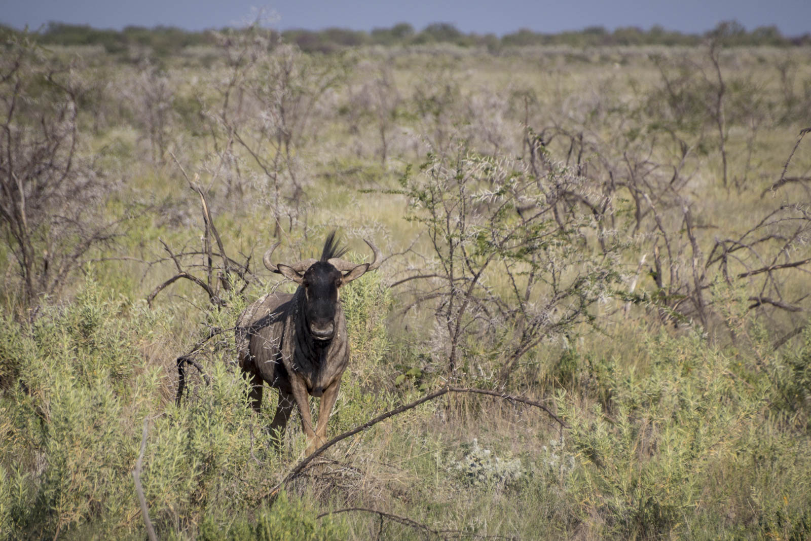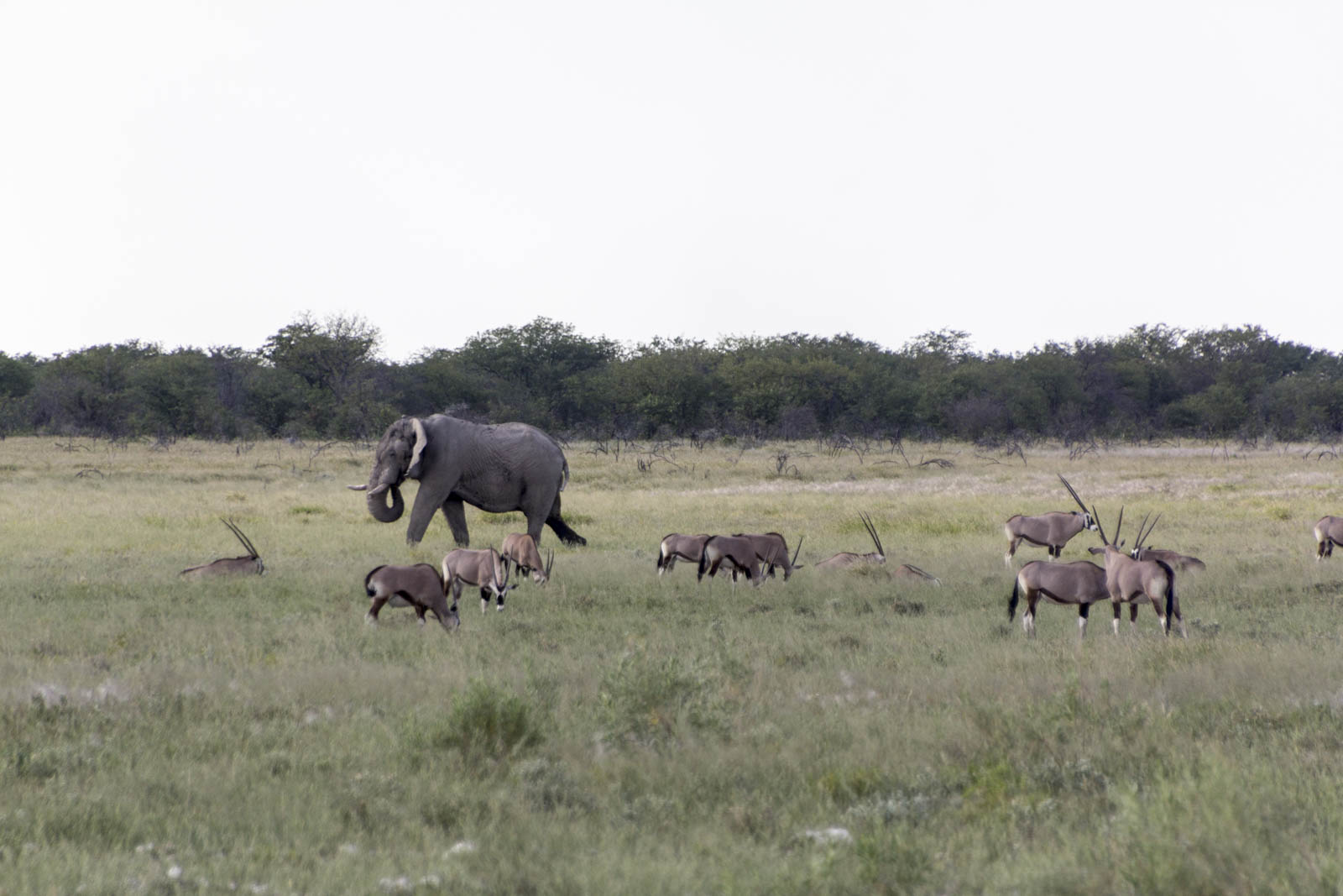 Etosha est un parc national du Nord de la Namibie, très propice aux safaris en jeep dans la savane. Et effectivement, tant au petit matin que dans l’après-midi, nous avons encore eu notre dose de vie sauvage. Il y a d’abord toute la gamme des antilopes, des plus petites – les dik-diks – aux plus grandes – les oryx – et les koudous, en passant par les impalas à tête noire (endémiques), les springboks et autres gazelles. Il y en a tellement de sortes qu’on s’y perd facilement.