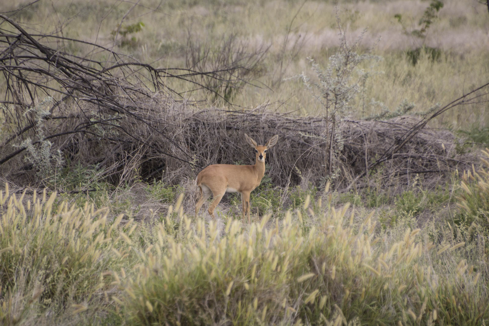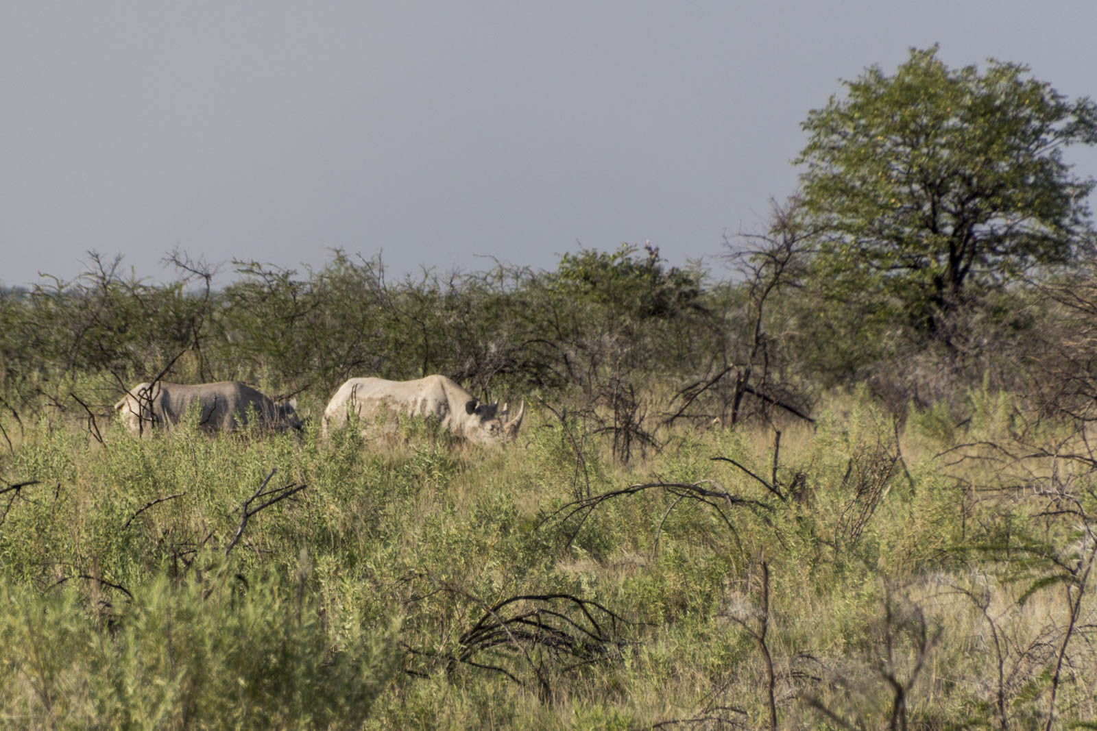 Le numéro des rhinos, quant à lui, se poursuit encore un moment. Malheureusement, on devra s’éclipser pour prendre notre dîner avec le groupe. A notre retour du repas, on est impatient de découvrir la suite du show. On a pris de quoi se tenir chaud et manger, comme au ciné de plein air. Malheureusement, à part un bref passage d’un rhinocéros et d’un chacal, rien à signaler. Le deuxième acte n’a pas tenu ses promesses. On rentre se coucher. C’est qu’à force de voir tous ces animaux, on en deviendrait presque exigeant !