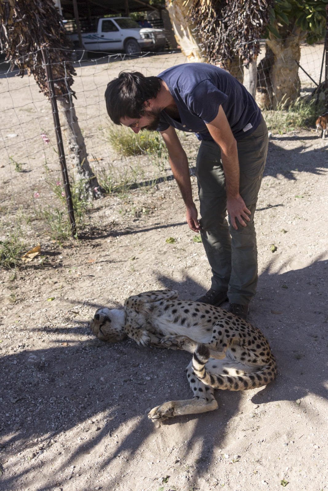 Ainsi, pour pas très cher (environ 6 €), les touristes viennent désormais dans sa ferme pour jouer avec les trois guépards les plus dociles, les caresser et se prendre en photos avec. Comme nous.