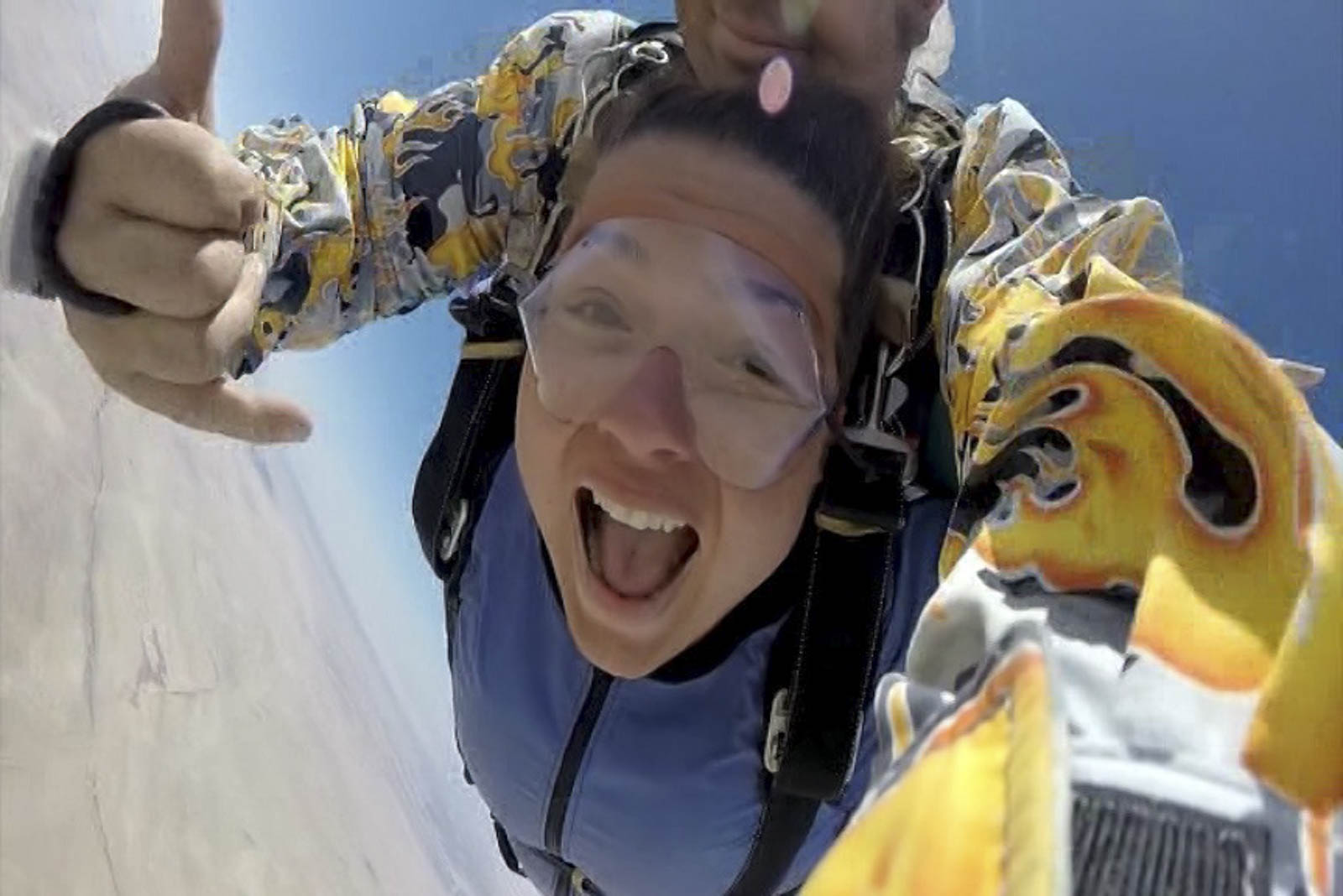 vu de nous jeter dans le vide au-dessus du désert, une chute libre à plus de 3000 mètres d’altitude, avec atterrissage en parachute.