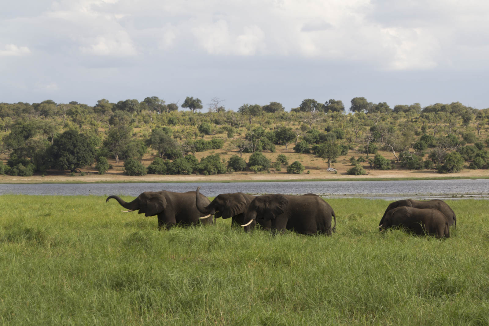 A peine arrivés au Botswana qu’un safari nous attend déjà, dans le parc national de Chobe. Chobe, c’est aussi le nom d’un affluent du Zambèze qui sépare le Botswana de la bande de Caprivi, une enclave de la Namibie. Et dont le point de confluence avec le Zambèze marque l’un des rares points à 4 frontières de la planète, en l’occurrence avec aussi celles de la Zambie et du Zimbabwe.