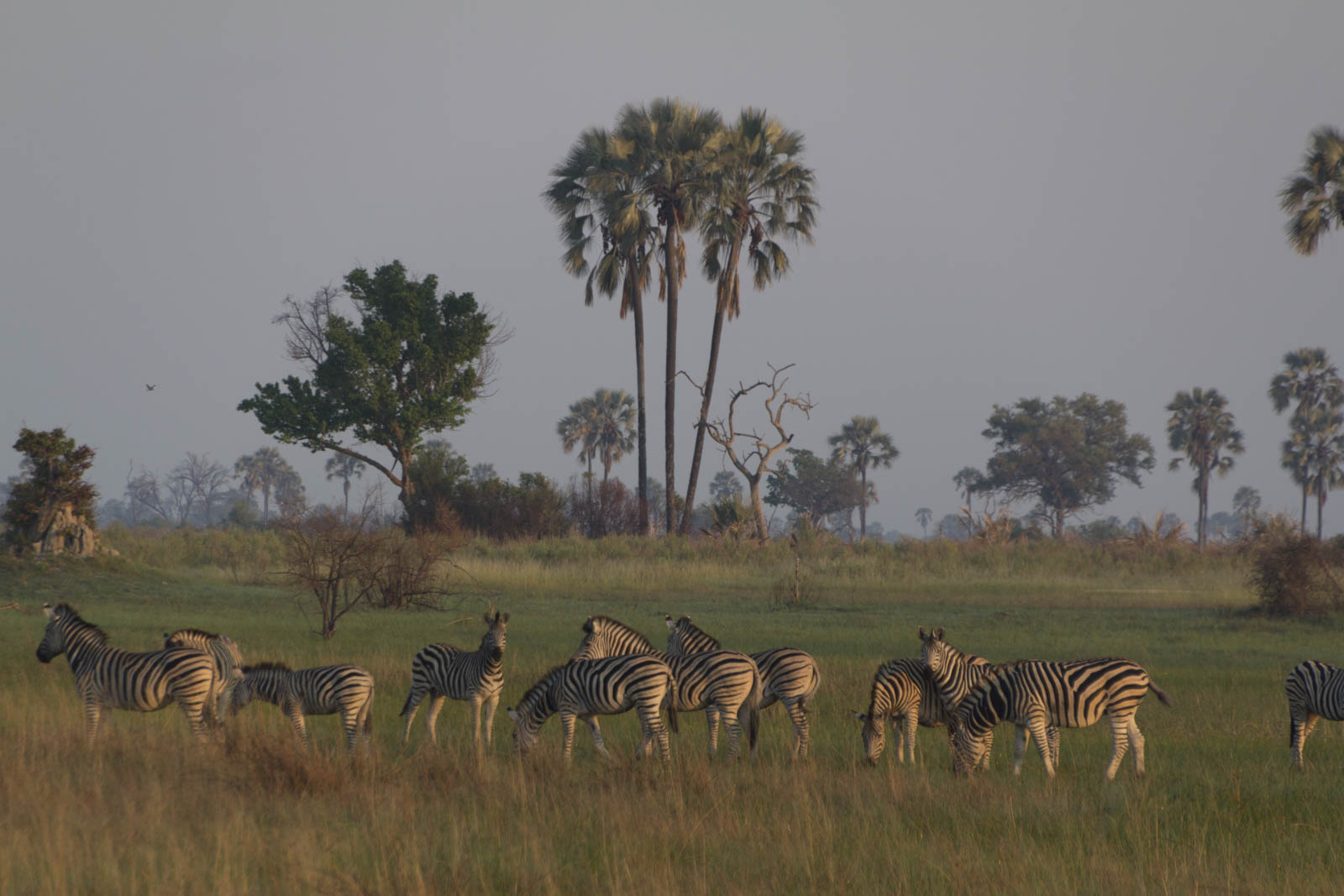 Quant à notre camp de bivouac, c’est aussi une oasis de tranquillité, sur une des grandes îles du delta. A quelques mètres de l’eau pour se rafraîchir quand le soleil tape trop au plus fort de la journée, mais aussi bien planqué à l’ombre des arbres. Ainsi, nous sommes relativement protégés de l’abondante vie sauvage qui nous entoure. Relativement, car quand vient la nuit et que le groupe réussit enfin à atteindre un état de silence satisfaisant, chose peu aisée dans un groupe de 10 personnes, on parvient à écouter la vie nocturne du Delta. Les grenouilles qui s’agitent dans l’eau, les hippopotames qui ronflent, les hyènes qui hurlent et même les lions qui rugissent ! Et dire que nous, nous sommes là, au milieu de tout ça, et que toute cette faune est susceptible de passer dans notre camp au milieu de la nuit. Impressionnant, mais ça ne nous a pas empêchés de dormir sur nos deux oreilles…