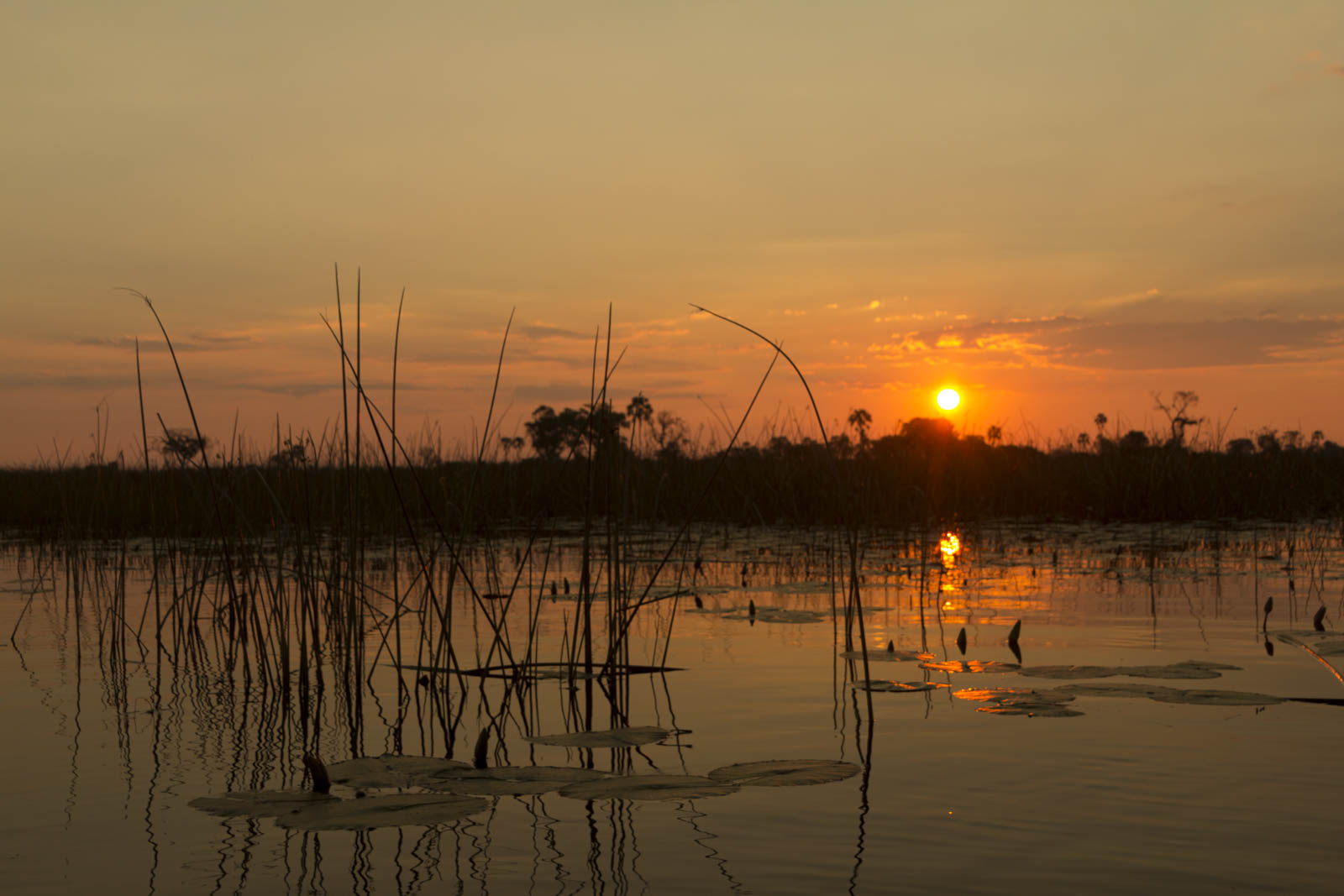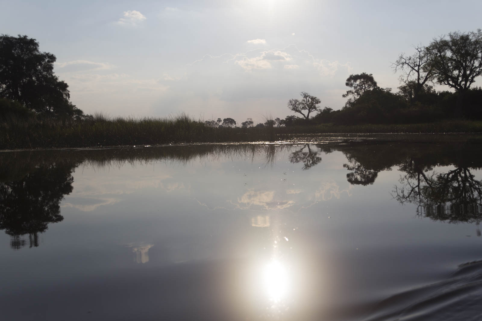 Mais quand c’est un professionnel qui conduit, c’est bien plus agréable. On se laisse guider au fil de l’eau, entre roseaux, nénuphars et hautes herbes, au milieu des grenouilles et des oiseaux. Et avec le déplacement particulièrement silencieux du mokoro sur l’eau, on arrive même à percevoir le son de la nature, calme et paisible. C’est encore plus remarquable en fin de journée, alors qu’il n’y a plus que nous sur les canaux, au moment de savourer notre coucher de soleil le plus serein d’Afrique !