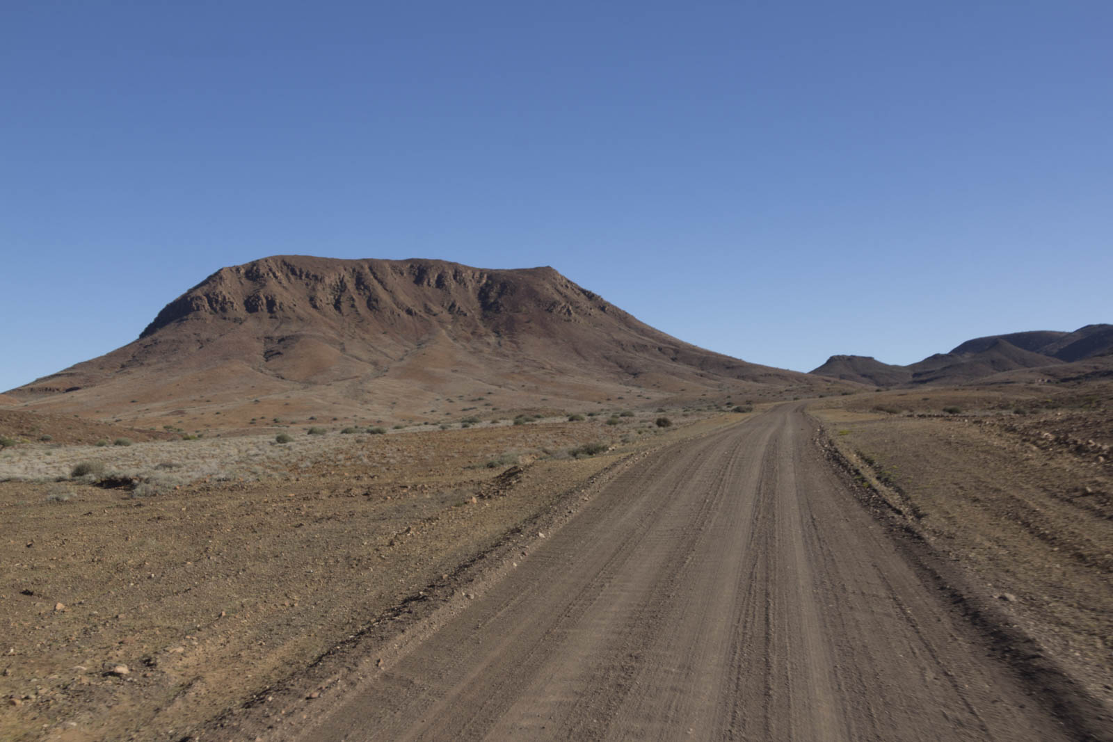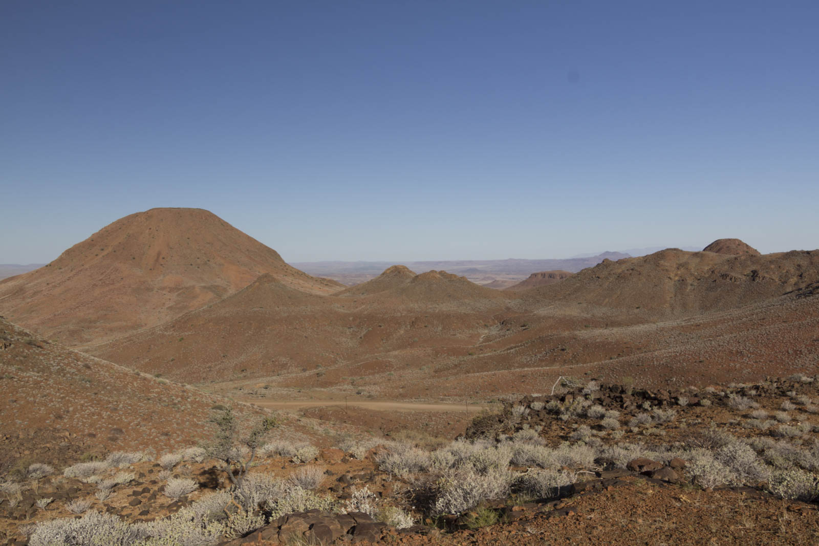 Puis après 4 jours à Swakopmund, nous continuons vers le Sud pour revenir dans des paysages vallonnés. Il y a des collines de toutes les formes, des rondes, des carrées, des pointues, des ovales, et la route qui serpente au milieu d’entre elles est assez indescriptible. Et bien sûr, antilopes, autruches et oryx sont toujours là. Les quelques arbustes dispersés çà et là suffisent à les nourrir, apparemment.