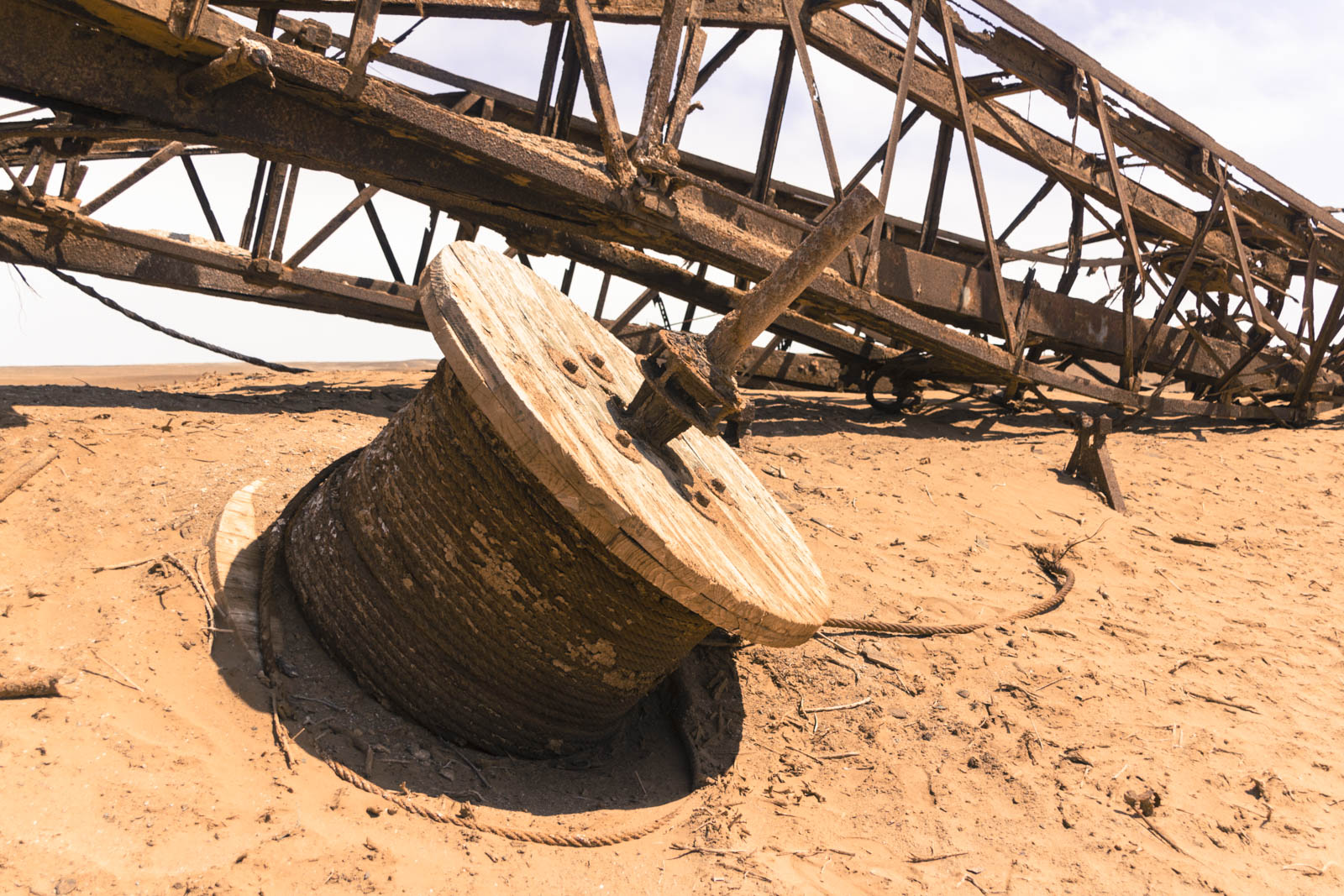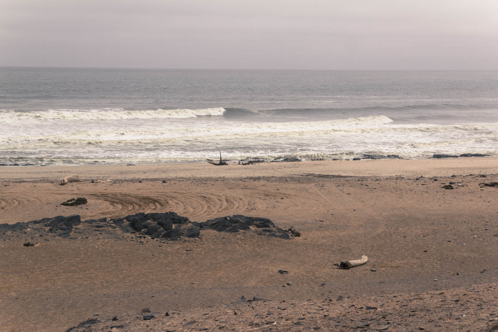 Au milieu de ce paysage de désolation, nous croisons un ancien puits de pétrole, abandonné, tombé par terre et rouillé. Plus loin, quelques épaves de bateau, parfois très anciennes et nombreuses sur cette côte. Tout cela témoigne du caractère particulièrement inhospitalier de la région.