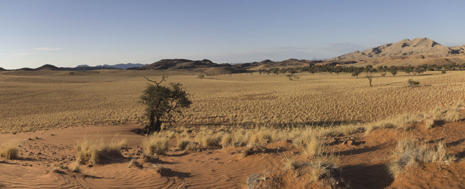 A l’Ouest de ces montagnes démarre le désert de Namib, l’un des plus vieux déserts de notre planète. Au fur et à mesure de notre progression, les pierres laissent place à de plus en plus de sable, ce qui ne semble pas perturber la faune locale, toujours bien présente. Puis ce sont des dunes rougeâtres, couleur due à l’oxydation de l’abondante limaille de fer présente dans le sable, que nous apercevons. Des dunes de plus en plus grandes, qui finissent par nous entourer complètement. Ca y est, nous sommes arrivés à Sossuvlei, au milieu du désert de dunes rouges, l’un des paysages les plus connus de Namibie.