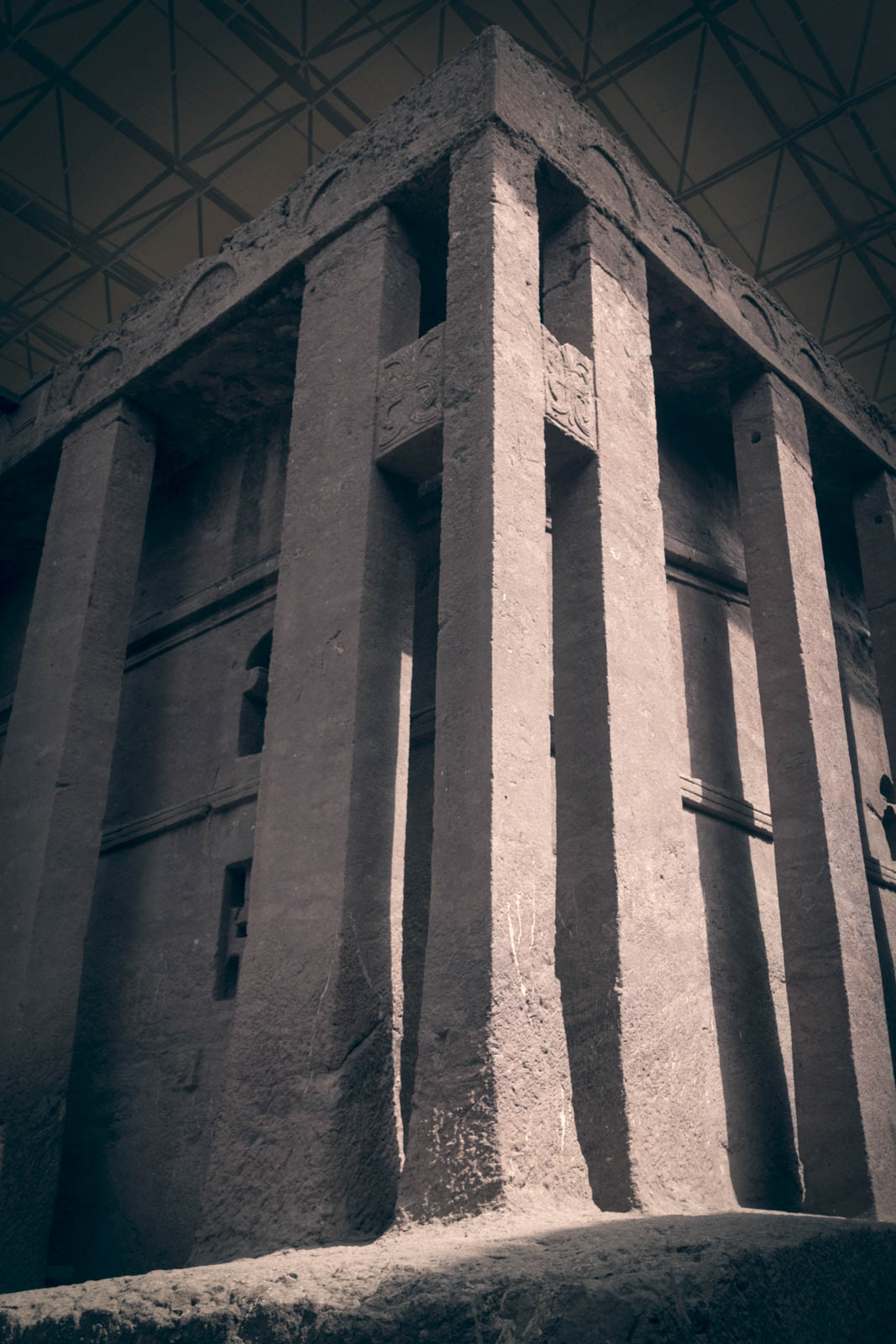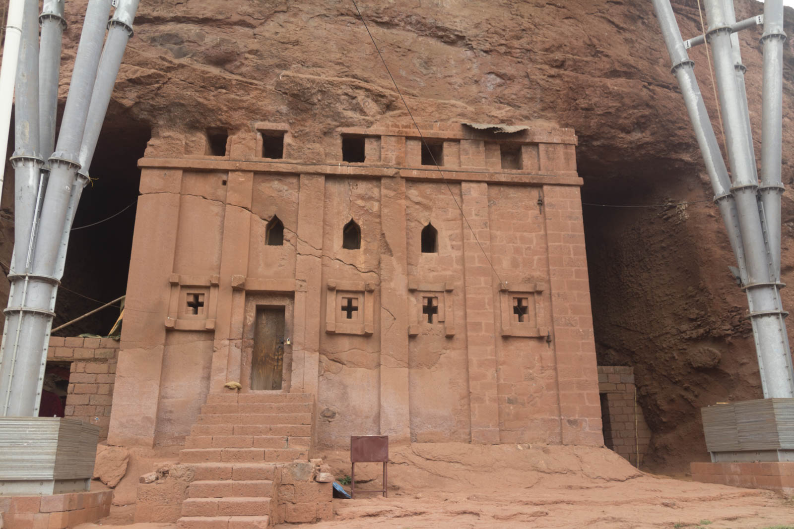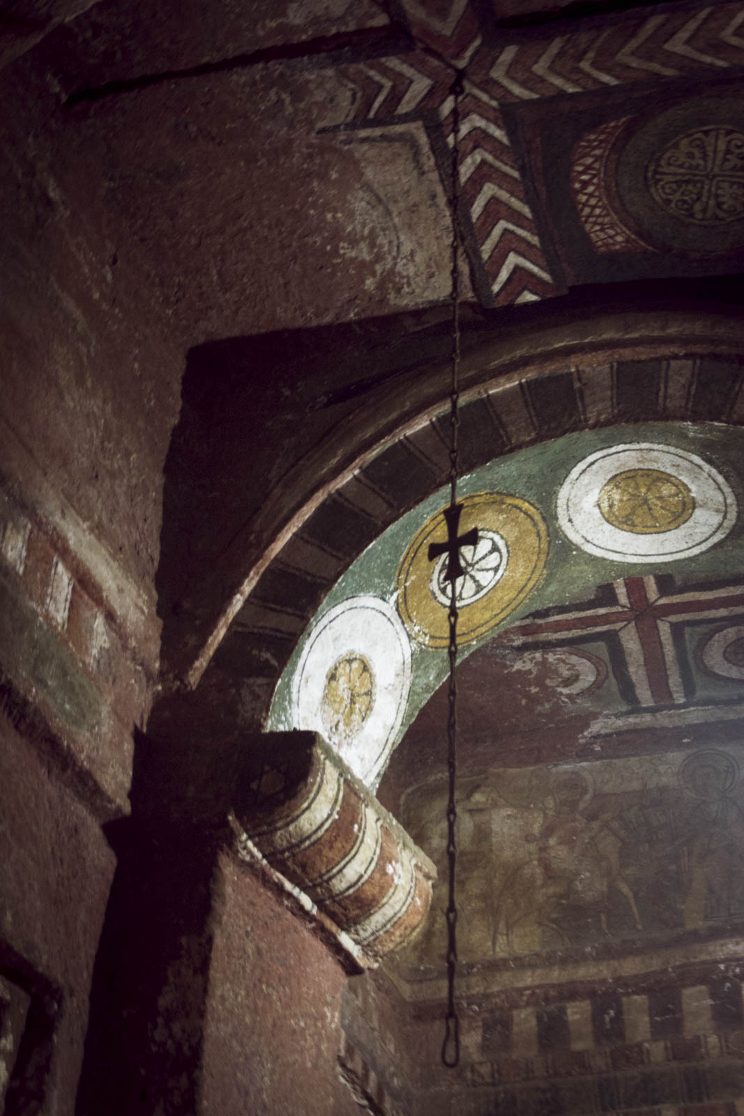 Mais la plus belle église reste quand même Bet Gyorgis, l’église Saint Georges. Elle est un peu excentrée par rapport aux autres, mais a la particularité de ne pas avoir de toit Unesco. Elle a la forme d’une magnifique croix orthodoxe. Cet église semble être un majestueux bloc de pierre, tout droit sorti du sol. Mais c’est l’inverse, tout a été creusé avec les petits outils de l’époque. Un travail remarquable, qui donne toute la mesure de cette œuvre titanesque. L’intérieur, en revanche, est comme pour les autres un peu exigu et moins intéressant.