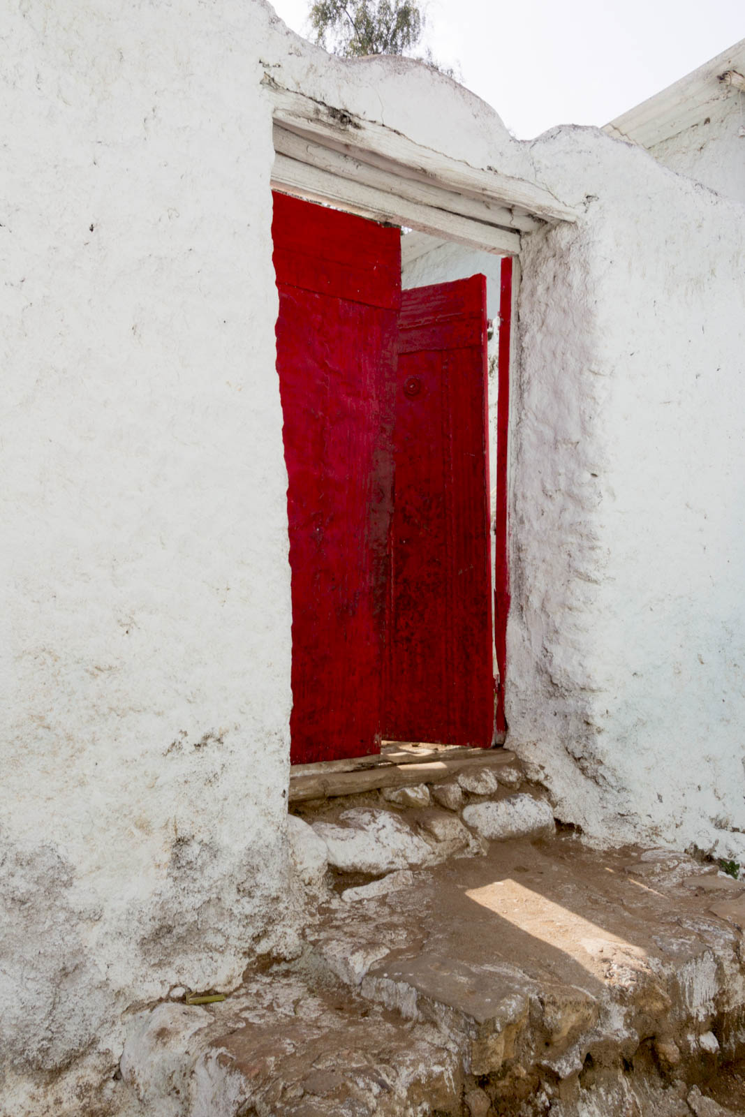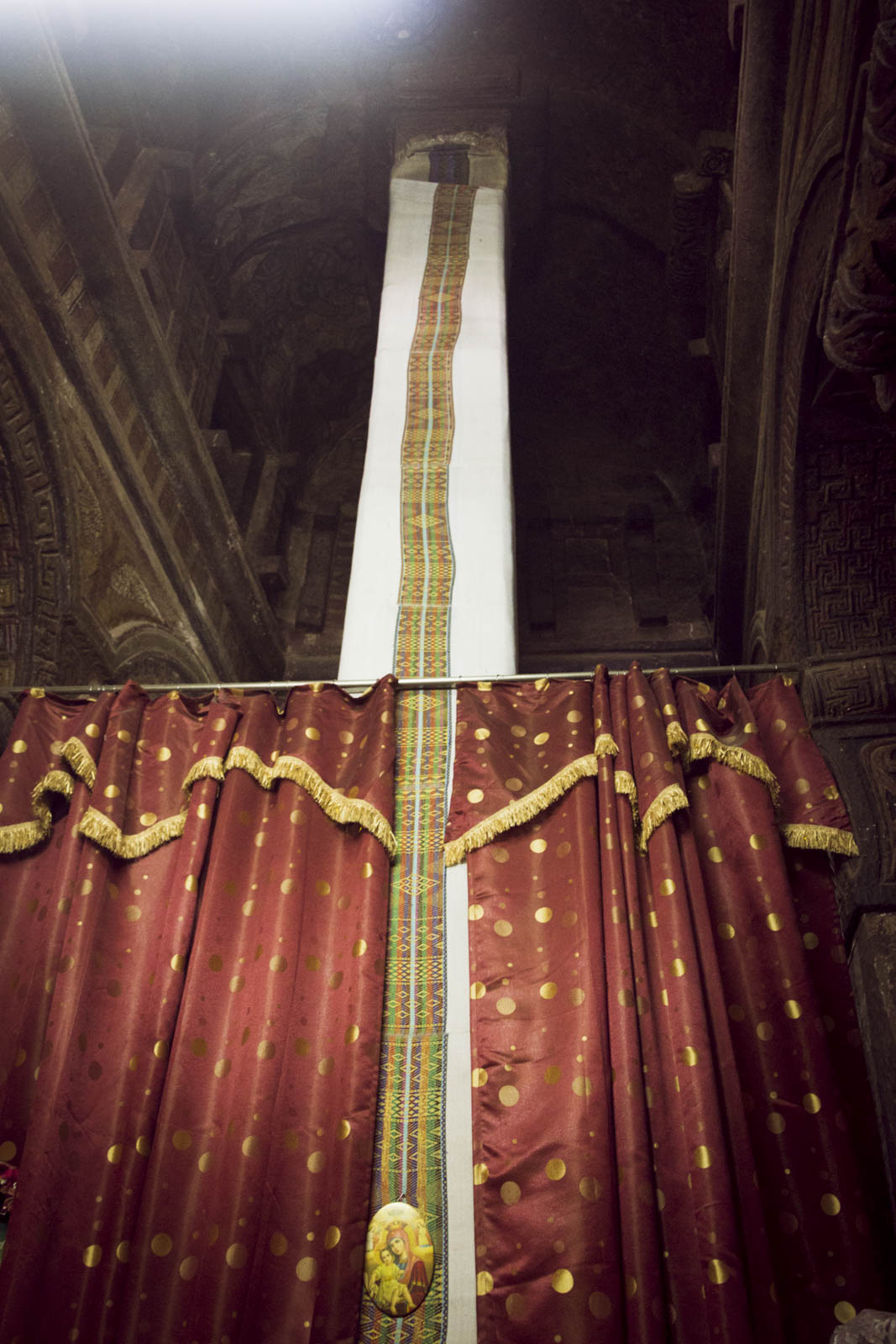 Dernier point concernant l’architecture générale, toutes les églises sont conçues de la même façon. L’entrée principale est toujours orientée à l’Ouest, tandis que la partie réservée au prêtre, où est systématiquement conservée une réplique de l’Arche du Couvent, est orientée à l’Est, au Levant. Les hommes et les femmes doivent rentrer séparément, les uns par le nord, les autres par le sud. Et attention, il faut laisser ses chaussures dehors. C’est donc en chaussettes, ou pieds nus, que l’on marche sur les tapis plein de puces (enfin c’est ce qu’on a entendu dire, car nous on n’a pas vu de puces…)