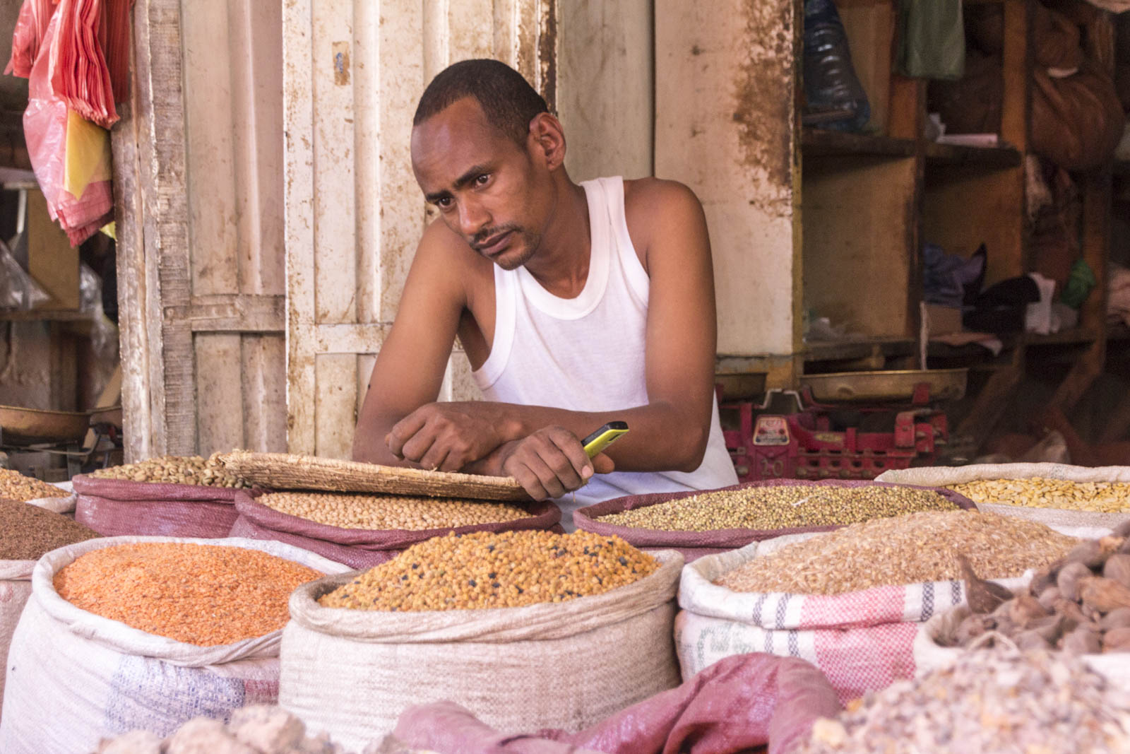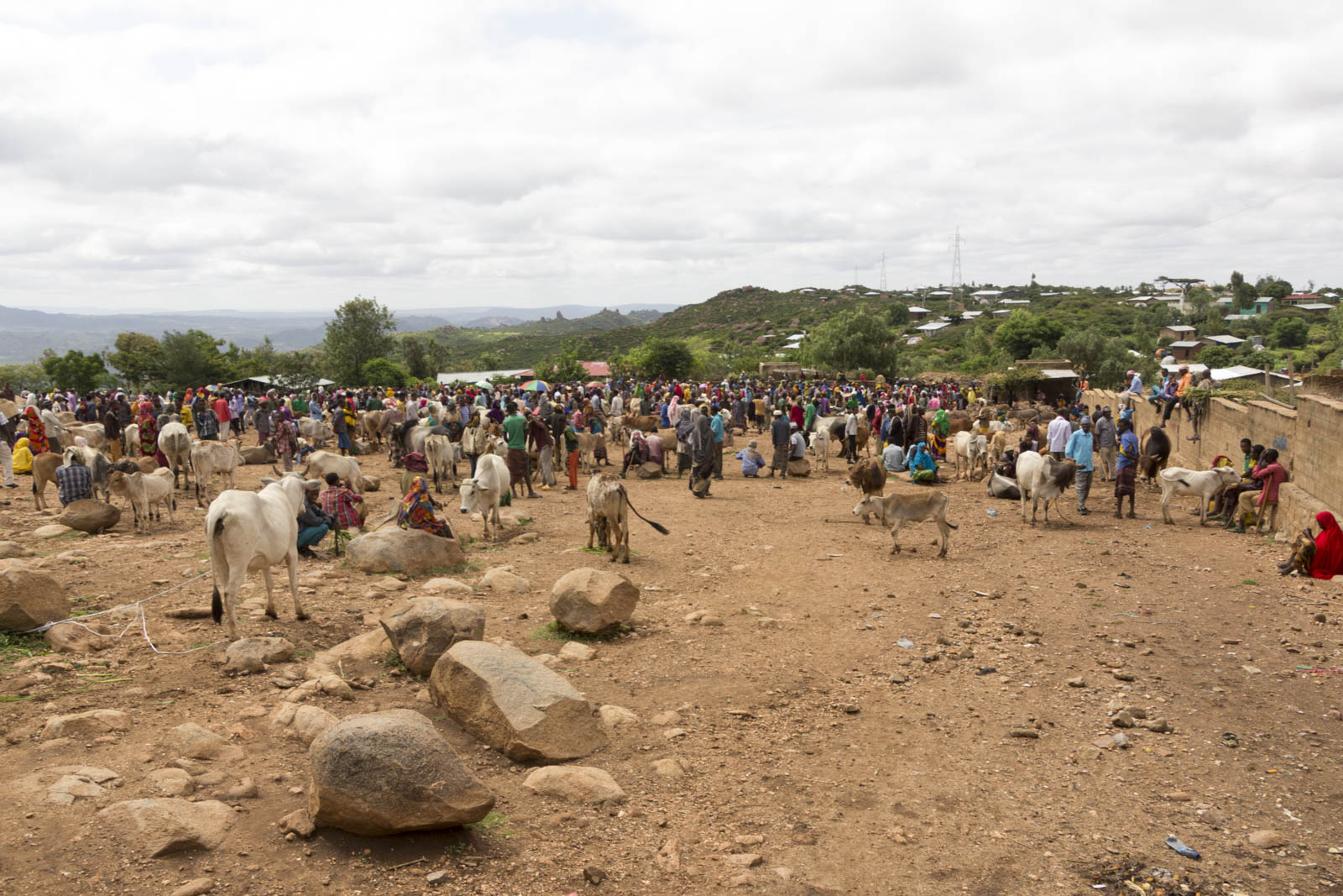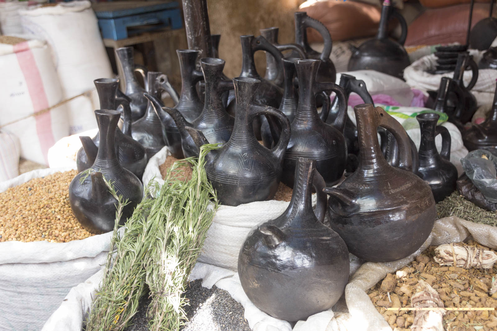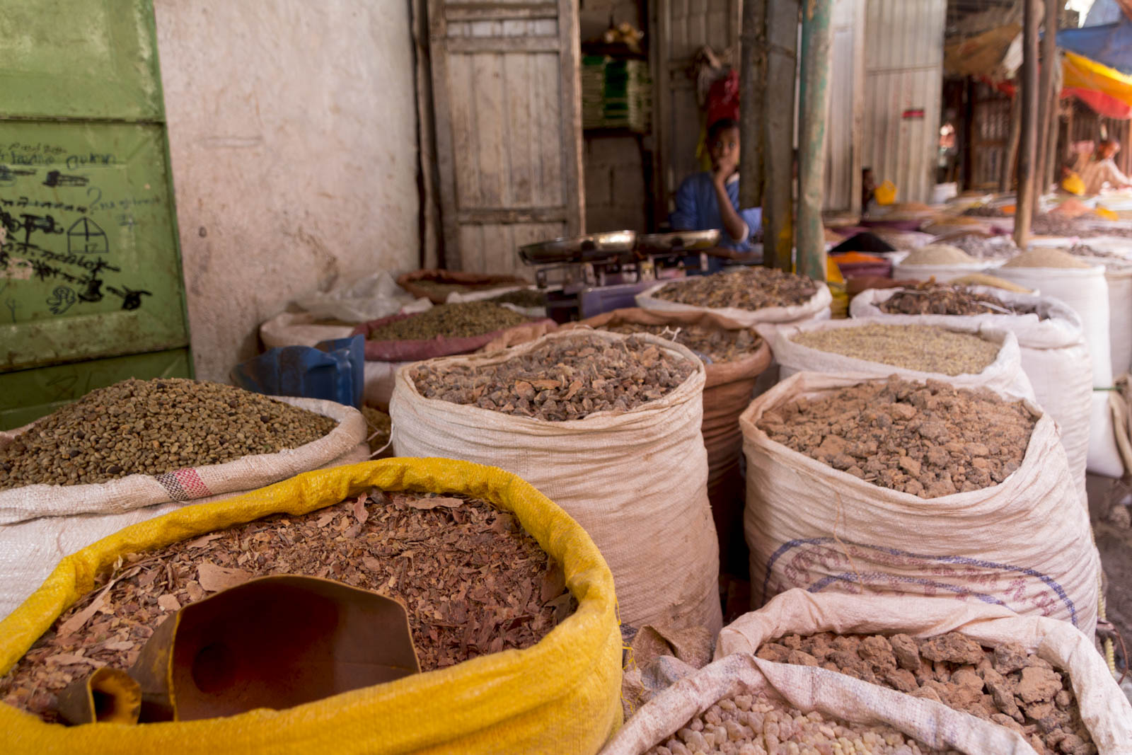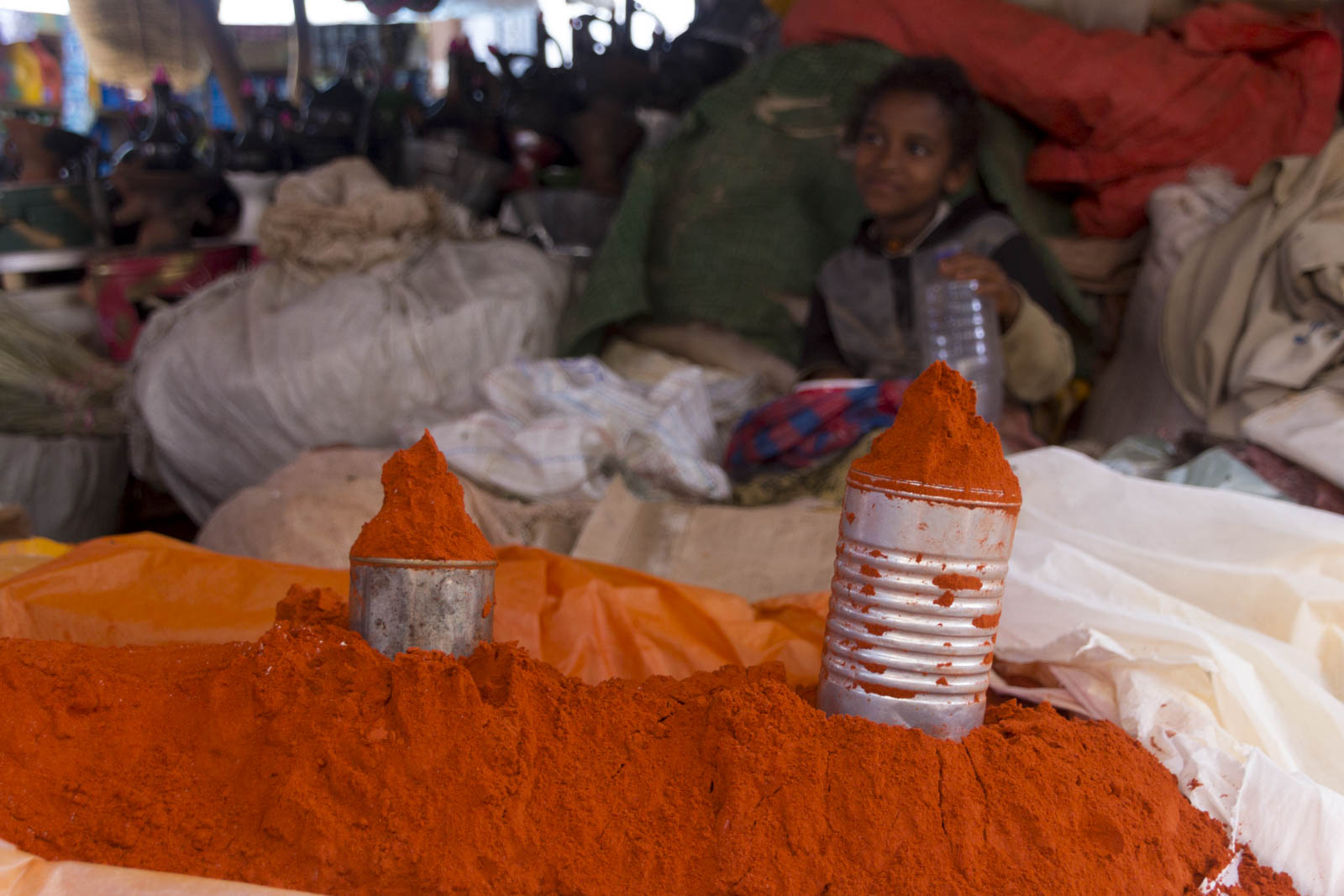 On a d’abord découvert les différents marchés, le marché chrétien et le marché musulman, essayé de reconnaître les différentes épices et céréales utilisées dans la cuisine éthiopienne (pas une mince affaire), et accessoirement entrevu quelques boucheries peu reluisantes, le tout à travers de petites allées étroites, glissantes et cahoteuses. Michael nous a notamment gratifié d’une petite anecdote intéressante : les chrétiens (en tout cas les orthodoxes d’Ethiopie) ne doivent pas manger pas de viande/lait de dromadaire. C’est sacré. Mais les musulmans, si. Voilà pourquoi nous n’avons vu de la viande de dromadaire que sur le marché musulman.
